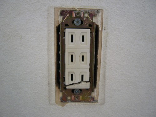 外壁に面しているコンセントは、寒さや結露でこの様に痛んでいるケースが良くあります