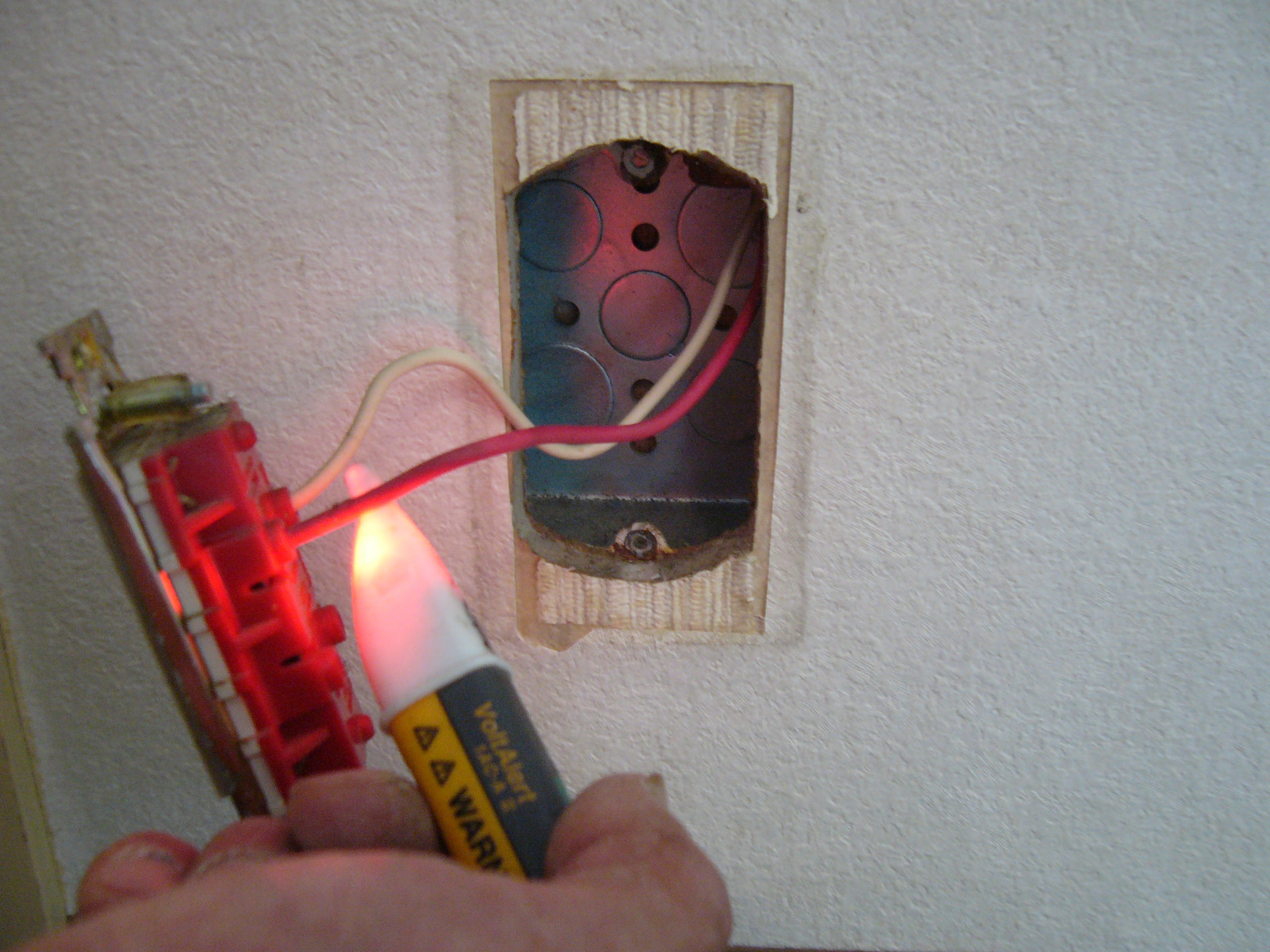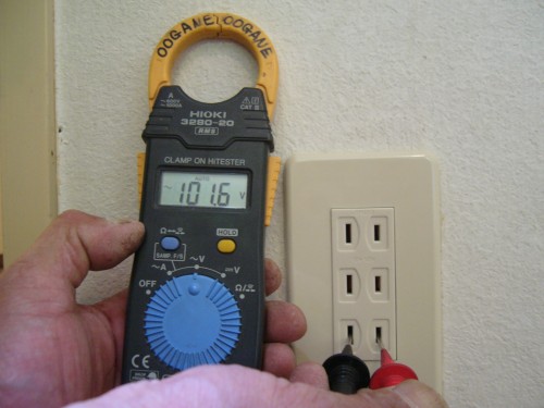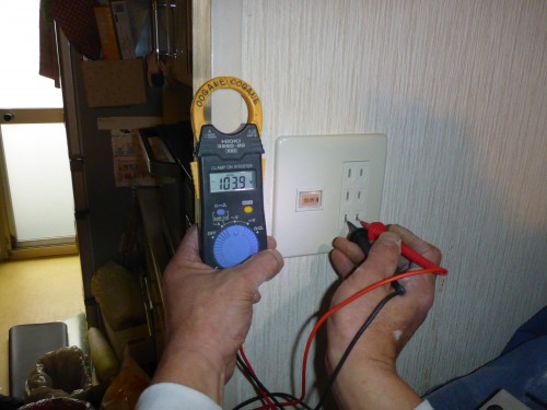 早速コンセントの交換が終わって、最終のテスターチェックです