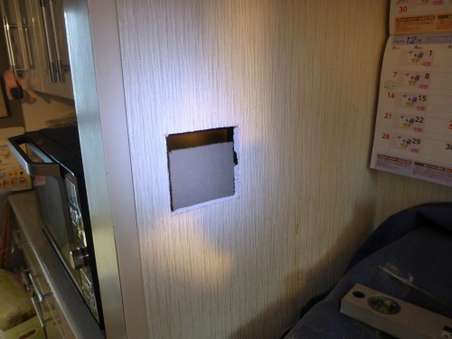 無事この様にキッチン入り口に、コンセントとスイッチの開口が出来ました。