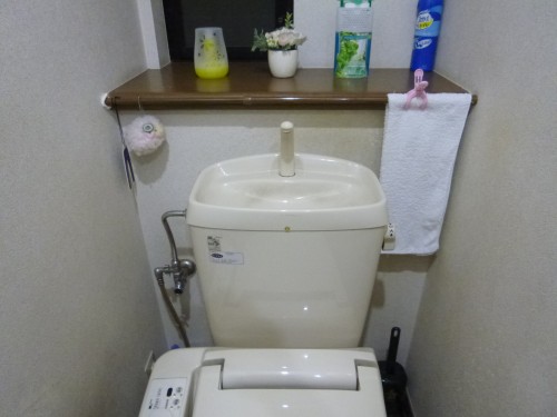 トイレ内は柱を避ける為に、二ケ所穴あけを致しまして。