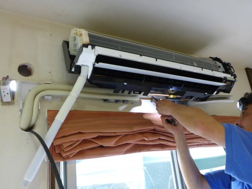 最近のエアコンは前からでは無く、上部から室内の空気を吸い込んでおりますので