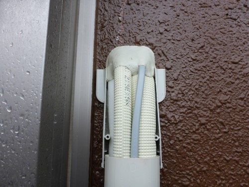 室外配管の出口もこの様にパテ施工をさせていただきました