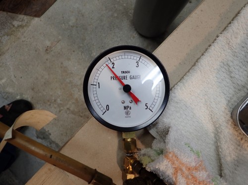 1.8メガパスカルほど加圧して、耐圧検査をします