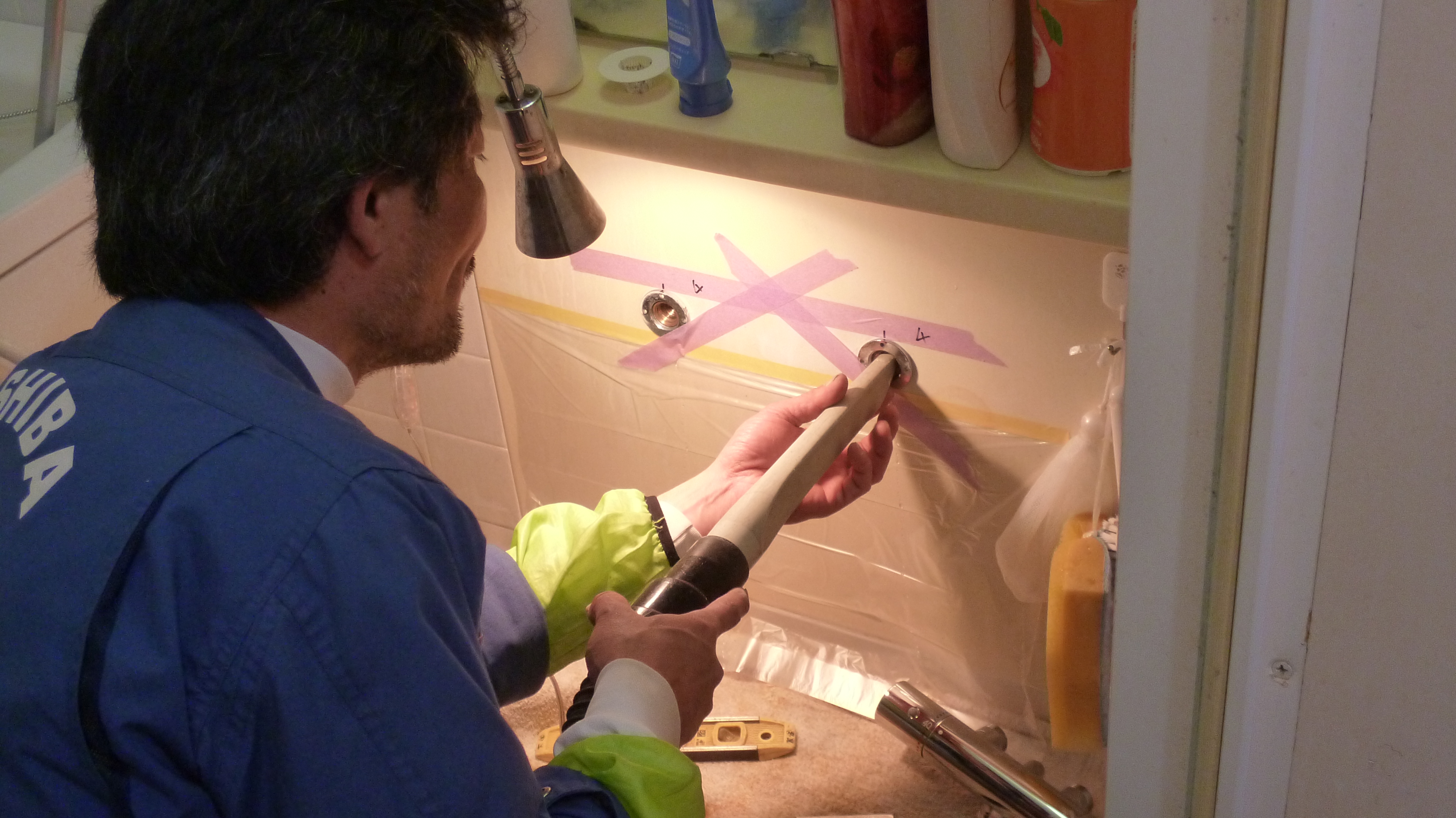 本日は、立川市のA君宅で、お風呂シャワー水栓の取替え工事です。