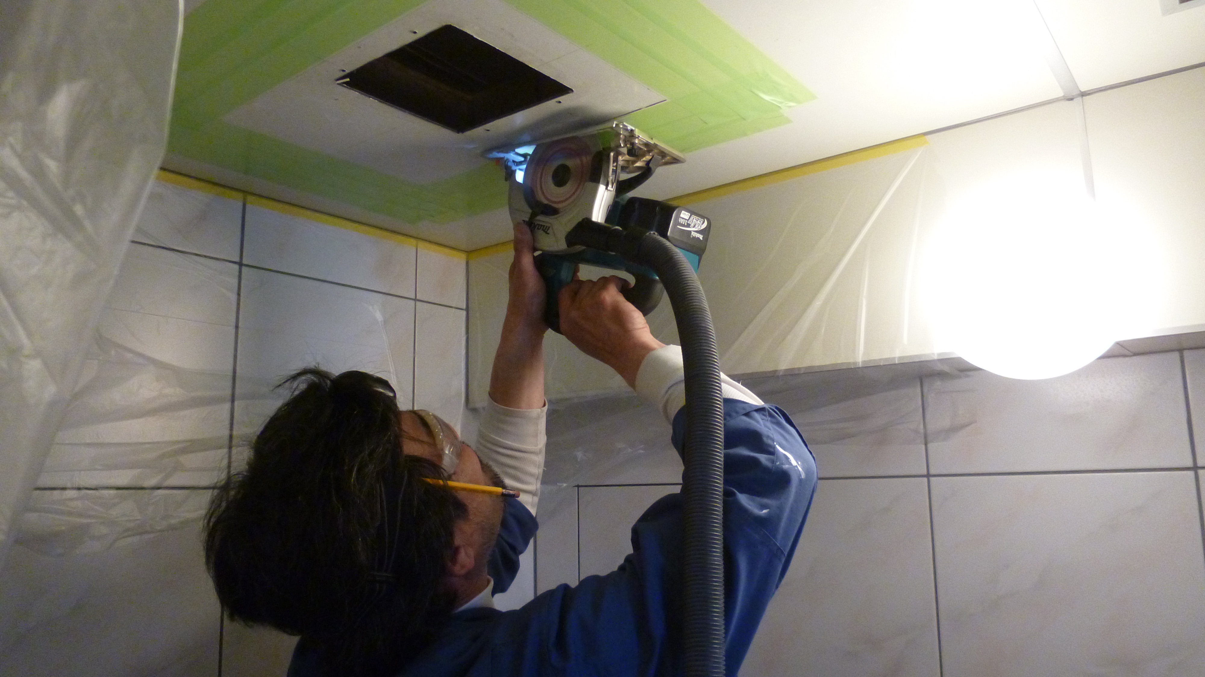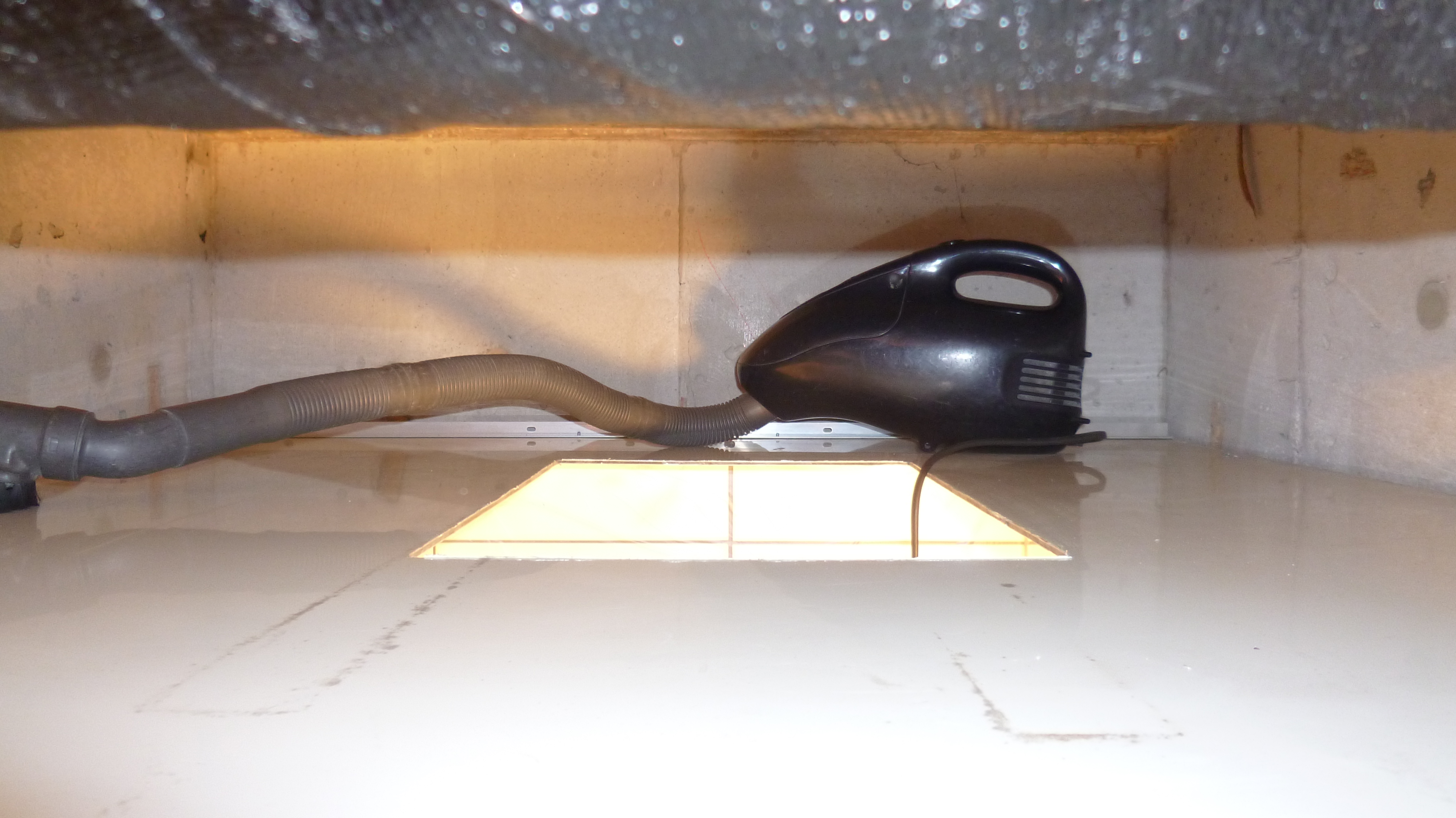 続いて、水道管の内部掃除です、バキューム掃除機で、吸引させていただきます。