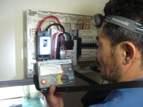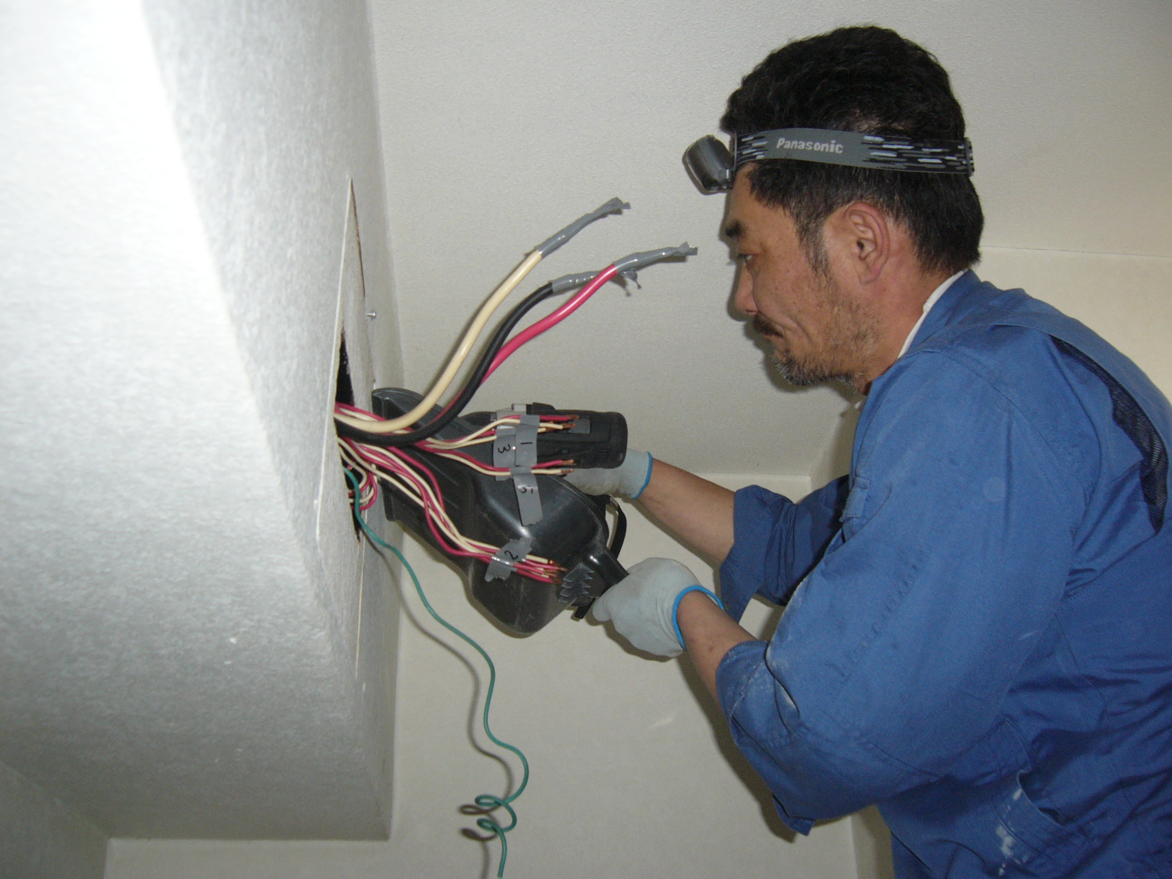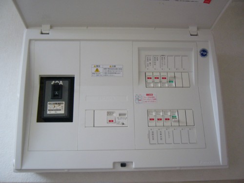 漏電遮断機付の新型分電盤を、お勧めしております。
