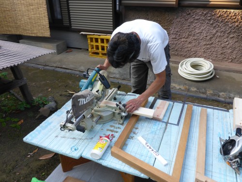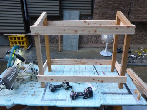 はい、骨組みの完成です、即席木工で作らせていただきました。