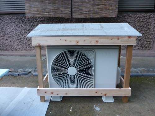 今回は、室外機の美しさの為ではなく、屋根から落ちてくる雪の固まりから室外機を守る屋根です。