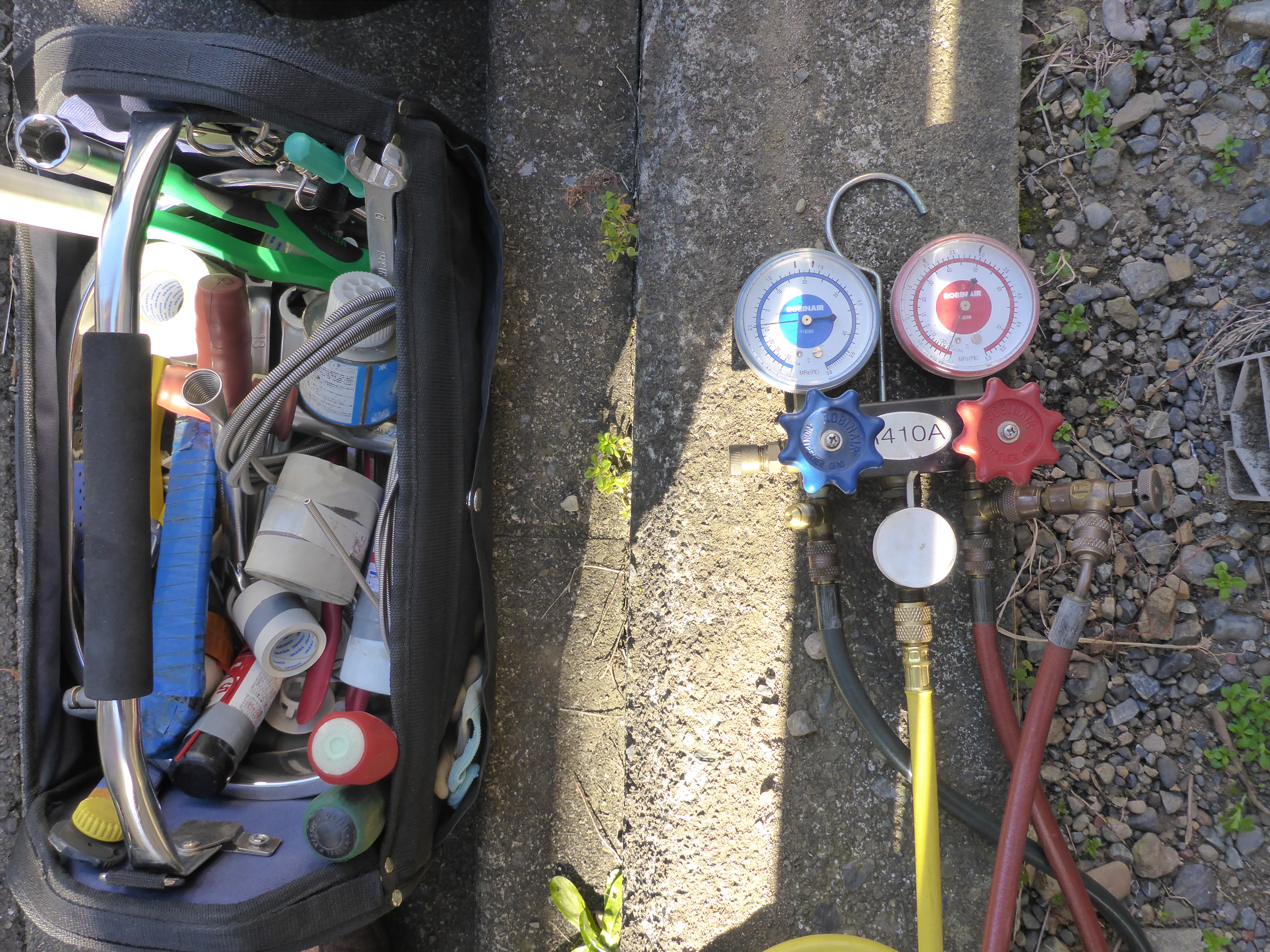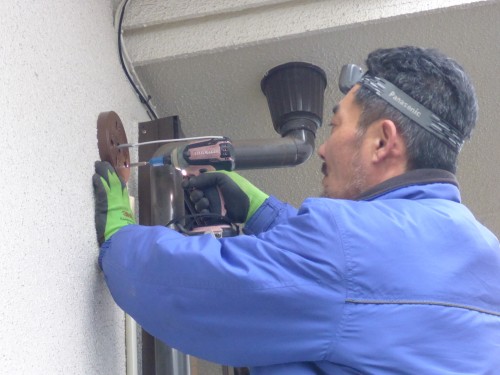 この様にいったん背面の石膏ボードを開口させていただきました。