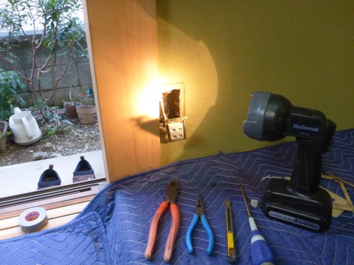 次の工程は、いったん開口をした石膏ボードを元通りにして、壁下地の完成です。