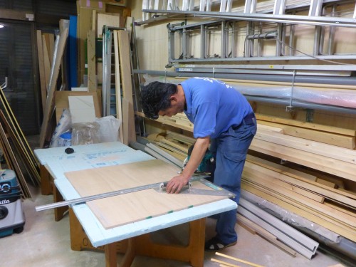 大きなサシガネを使用して、寸法をしっかりさせていただきます。