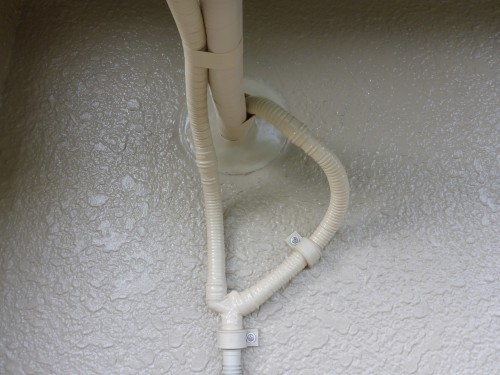 S様が室外のドレンホースの劣化を心配されておりました