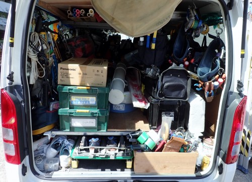 業務用空調のアフターの時は、こんな感じのしたくで出かけます