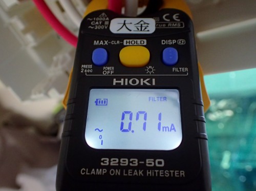 先ずは フロンリークチェッカーで、ガス漏れがないか調べます。