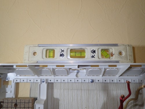 水平器と、1メートル定規を使用して、垂直バッチリにさせていただきました。