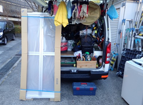 こちらの↑お買い上げいただきましたエアコンを積んで出発です