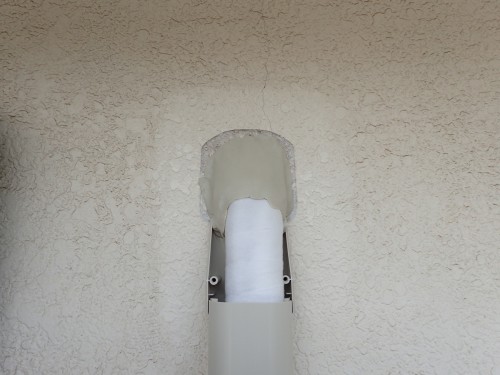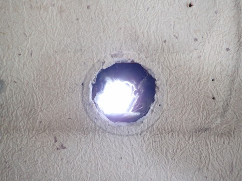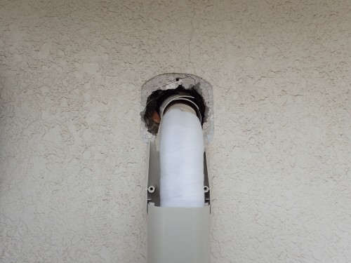 既設の配管出口の穴が、少し「ヤンチャ」に開いていますね
