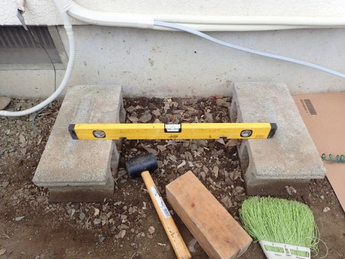 ブロックの敷き直しをして、これで水平バッチリですね。