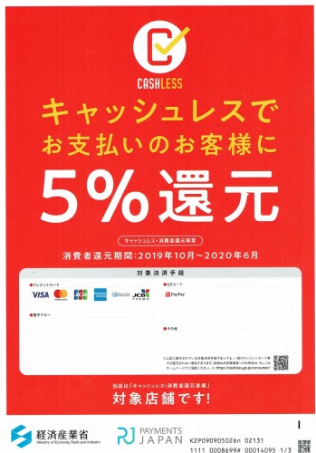 本日のお知らせは、当ヒカリ電機も「キャッシュレス決済と、キャッシュレス、ポイント還元事業」に