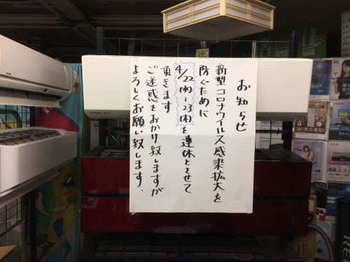 今日のお知らせは、新型コロナウイルス感染拡大防止の為と
