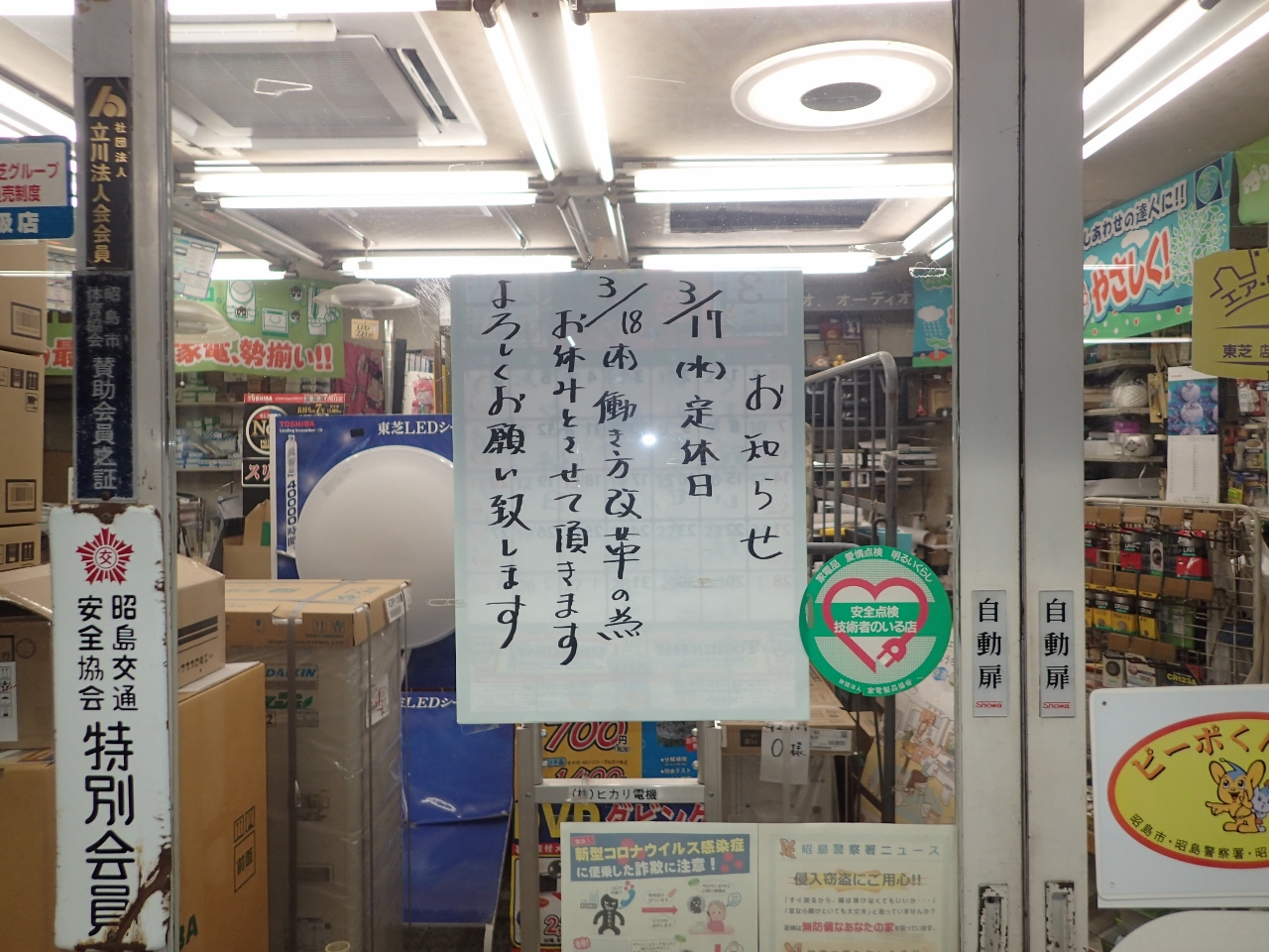 2021/03/18(木曜日)臨時休業のお知らせと、コロナ禍のヒカリ電機。