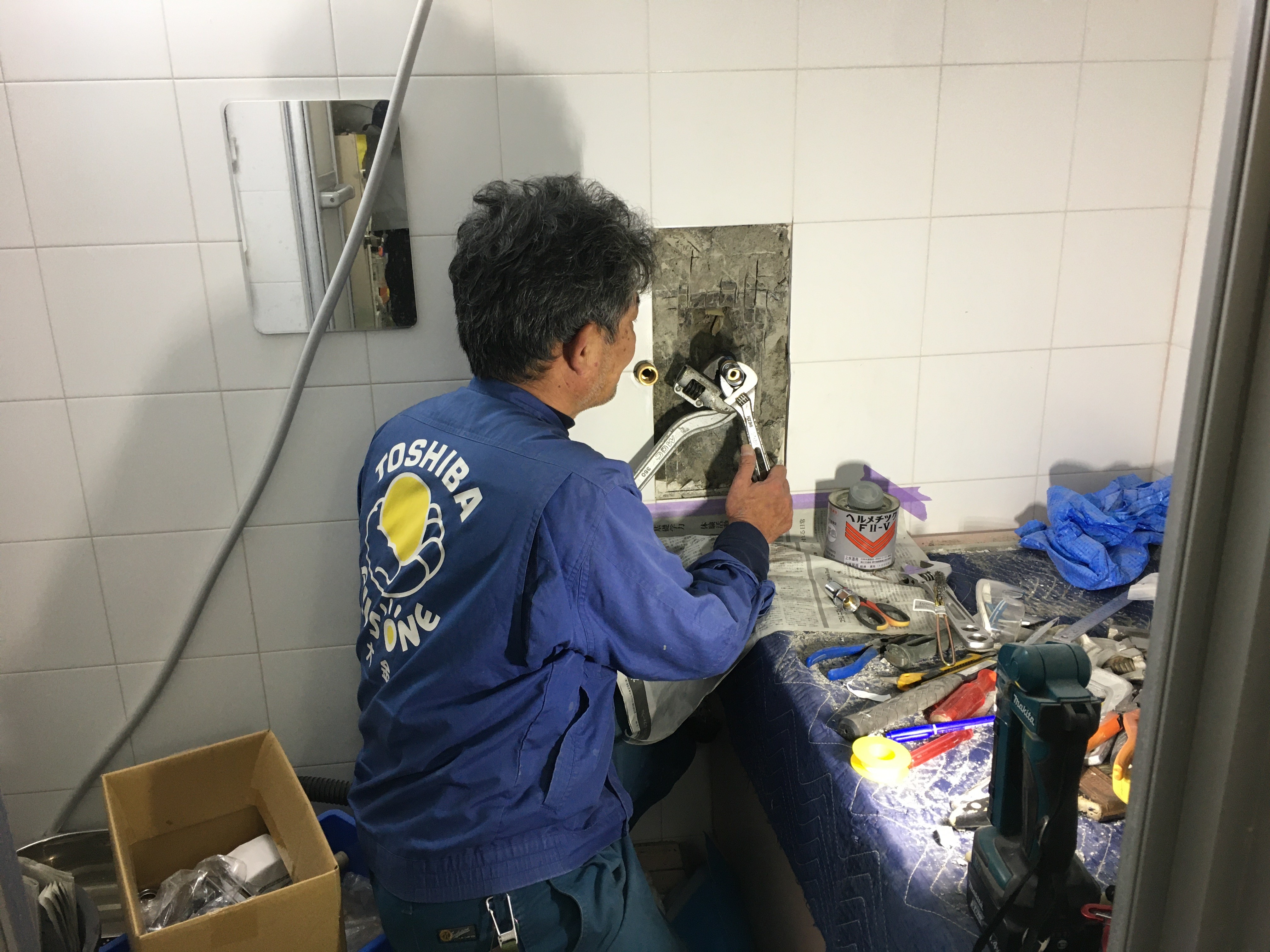 お風呂の給水管から水漏れでお困りのお得意様宅に伺ったり。