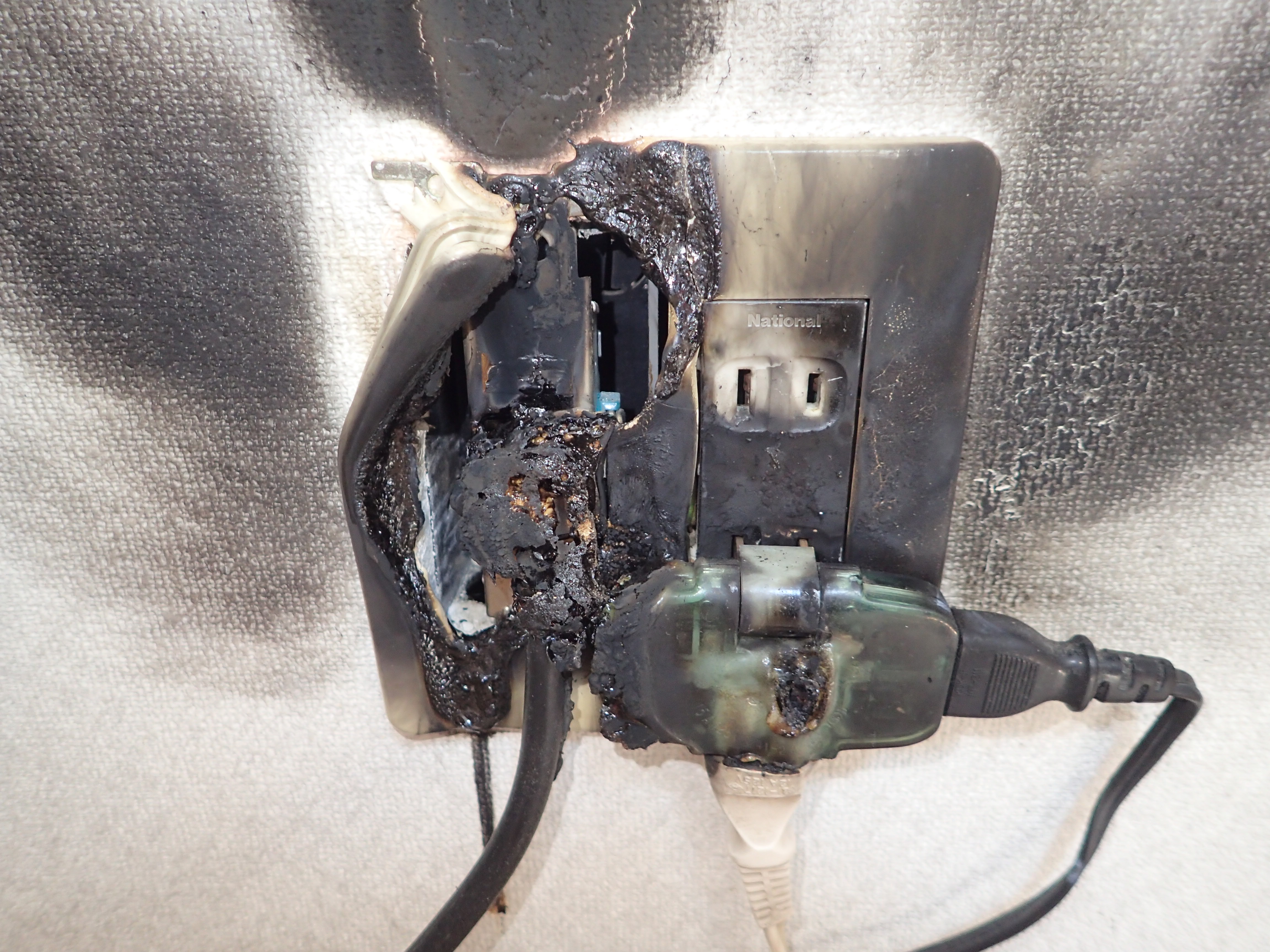 今回のコンセント火災は、在宅中でA様が気付かれて大事に至らなかったそうです