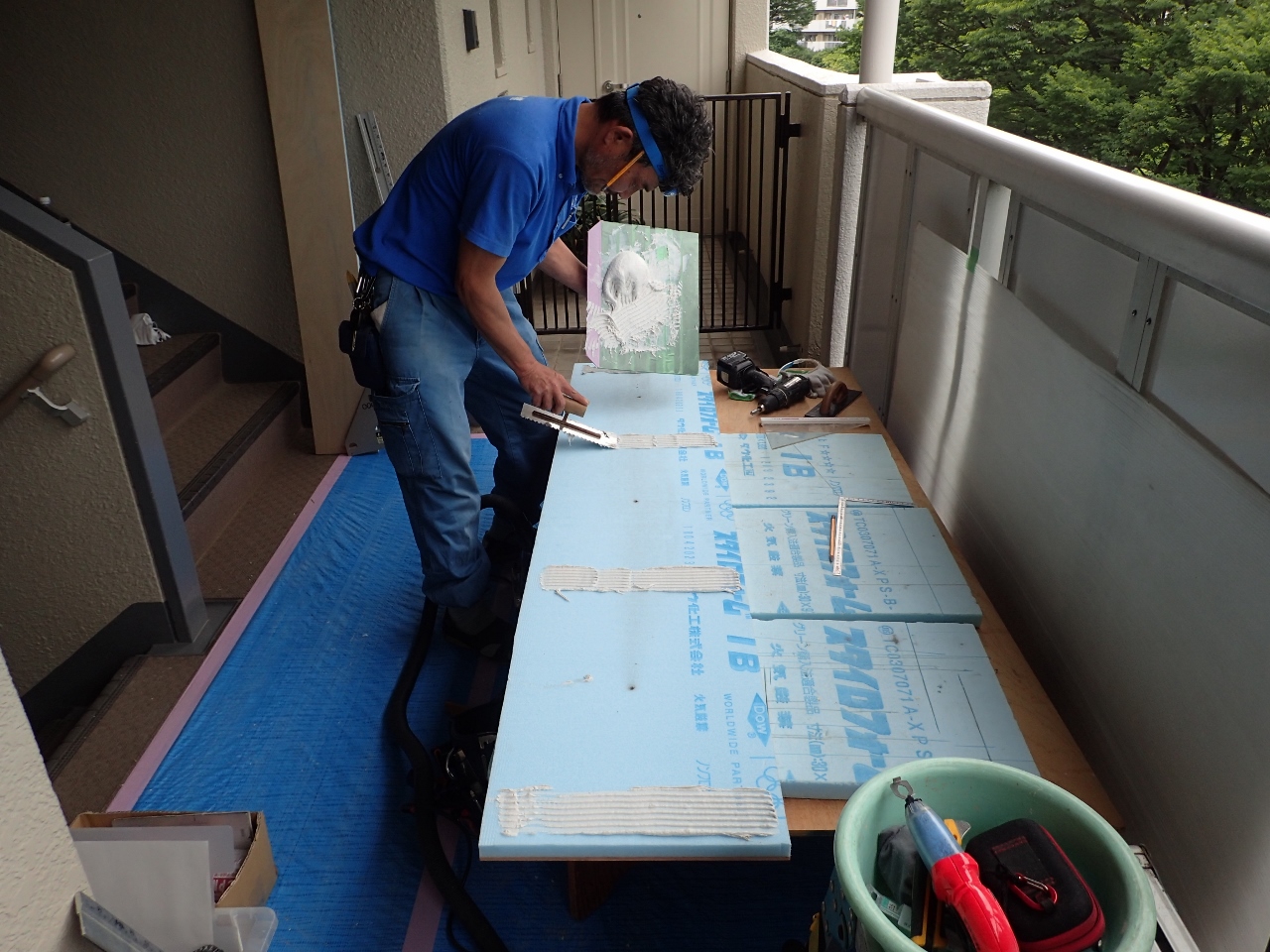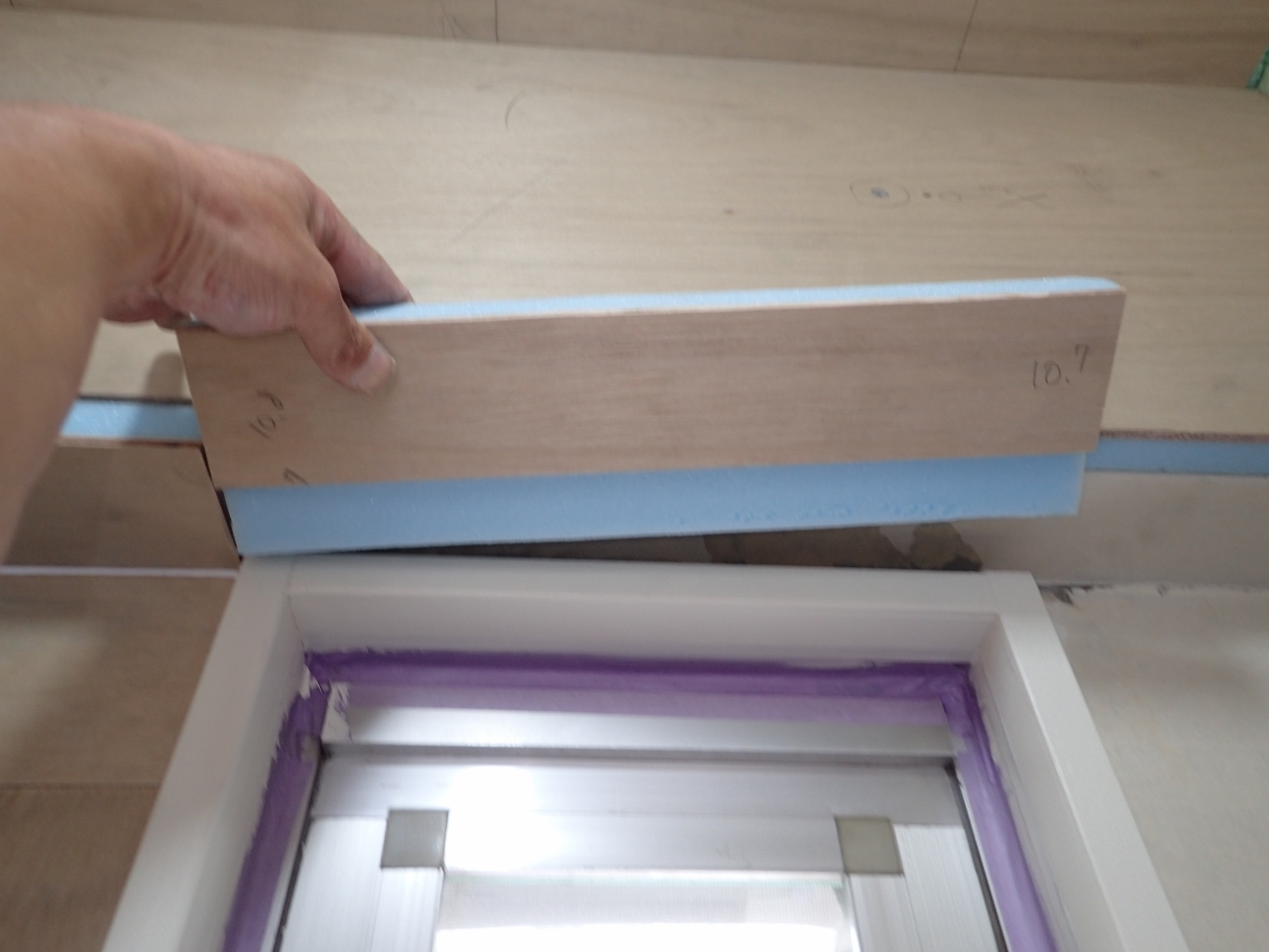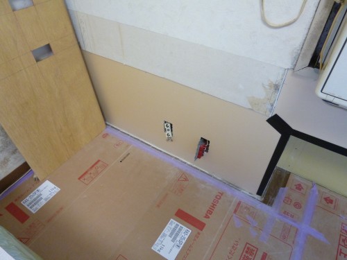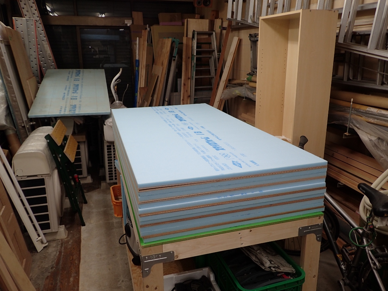 昨日に引き続き、内玄関にスタイロフォーム断熱を貼って行きますが