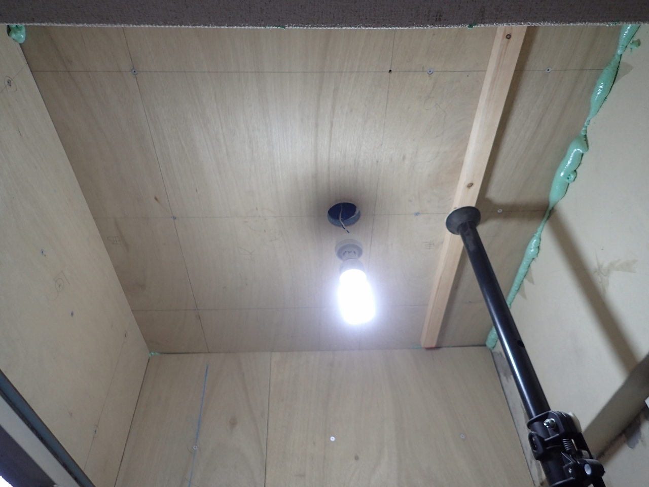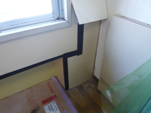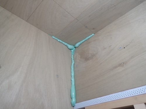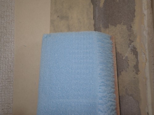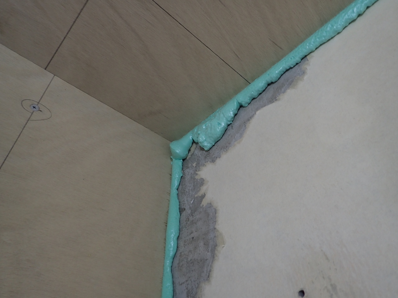 壁の隅は、後々にカビなどが出ない様に、しっかりとウレタンフォームで隙間埋めをさせていただいて。
