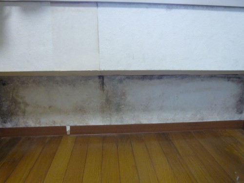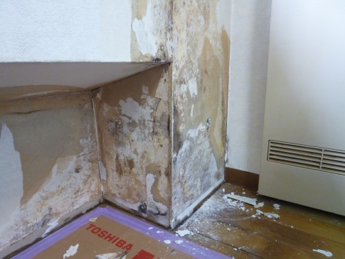 この壁面も冬場に成ると冷えで、壁面が結露して壁紙が剥がれてくる部分です