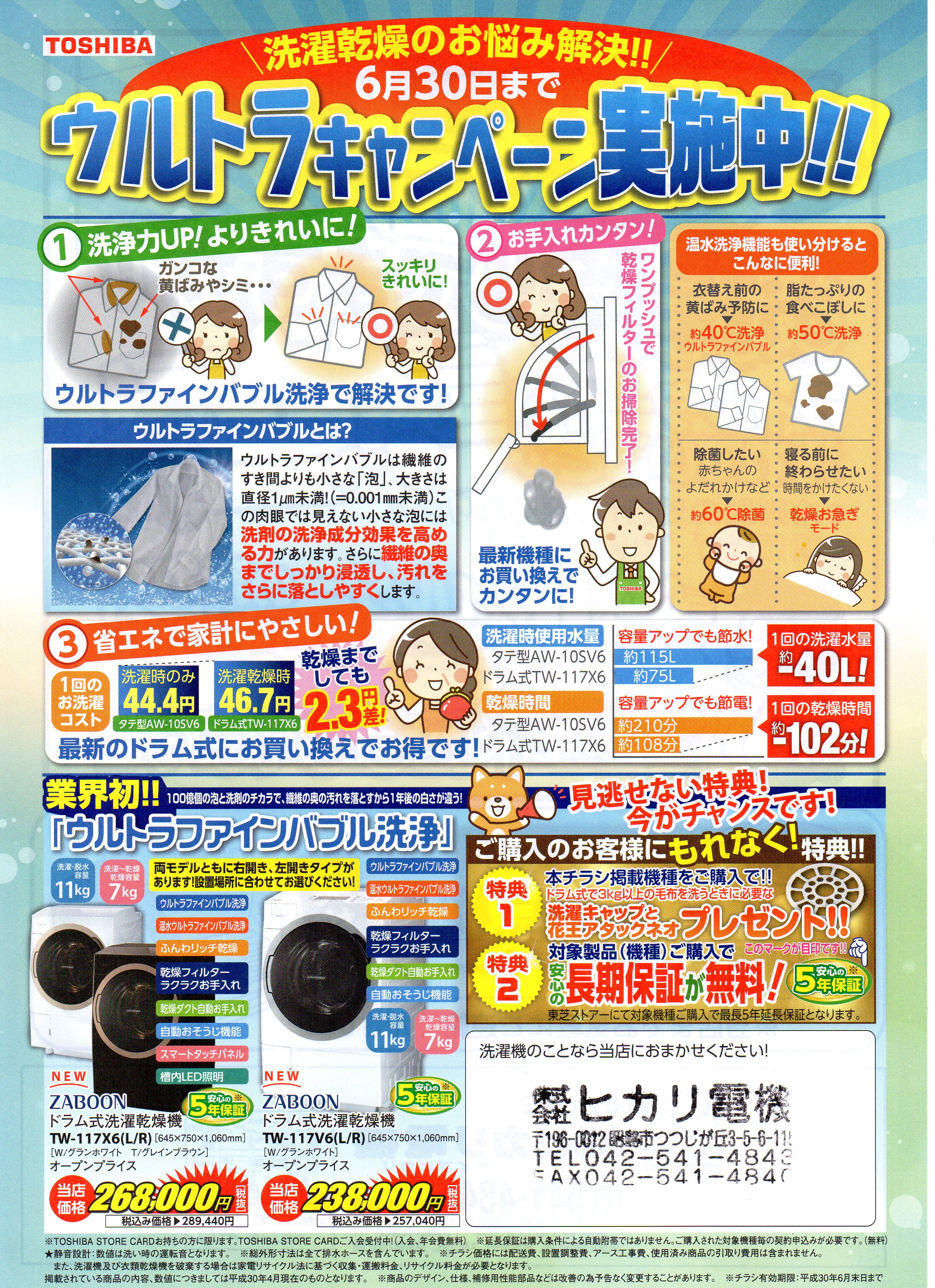 それから、6月30日まで【洗濯機のウルトラキャンペーン】も実施中です