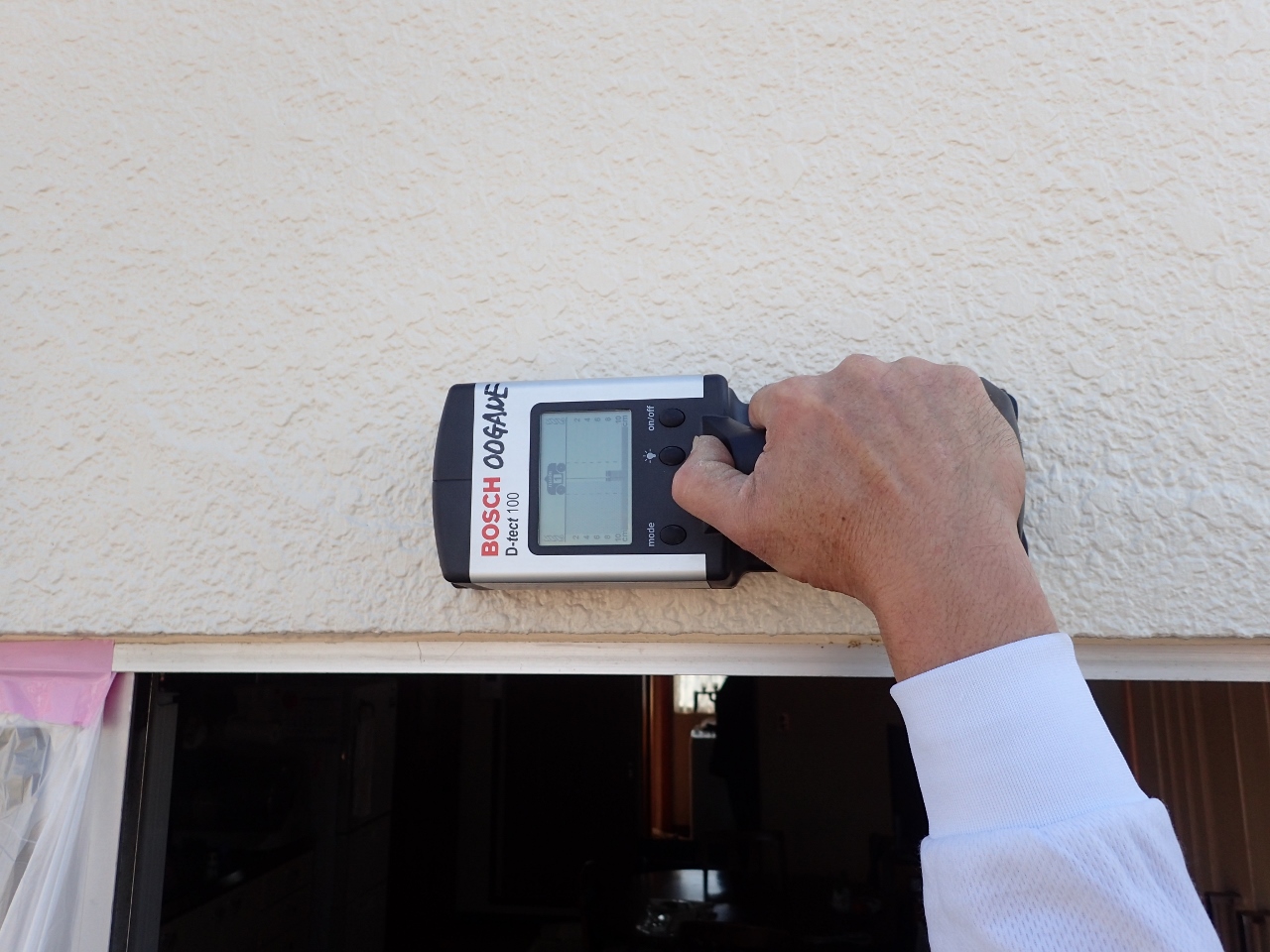念の為の念の為で、外壁面からも縦鉄筋を探って見ます