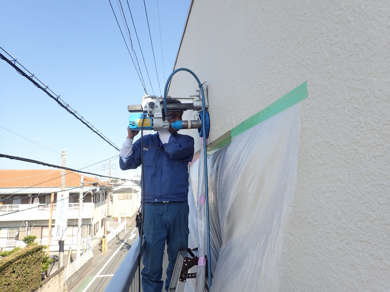 今日は、S様宅へエアコン用コンクリート穴あけに伺って来ました。