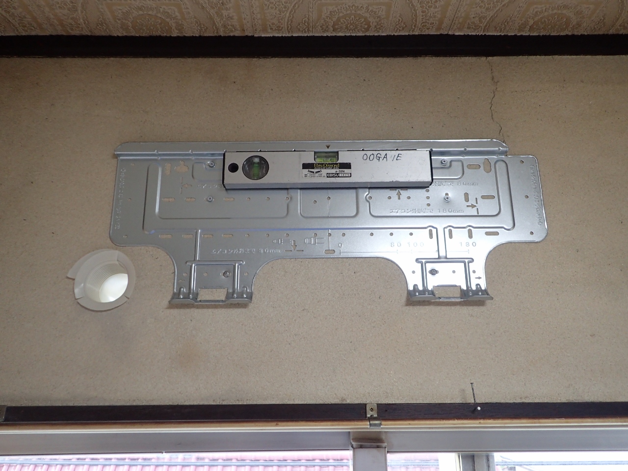 室内機の取付も、いつも通り水平器を使用して「水平ばっちり」で