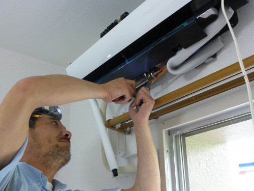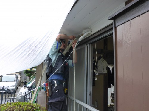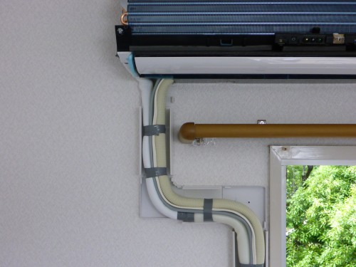 湿気対策の為に配管とドレンホースに、断熱材を施工させていただきました。