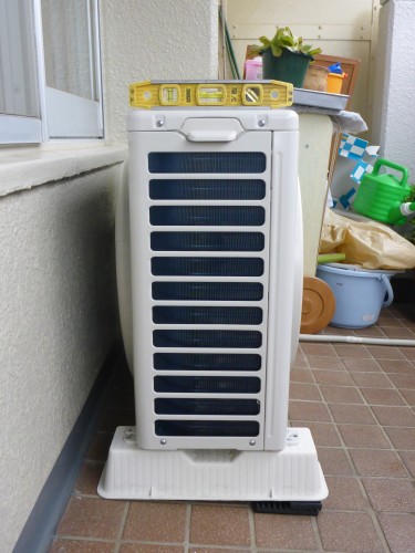 室外機もヒカリ電機こだわりの、ブロック敷きです。