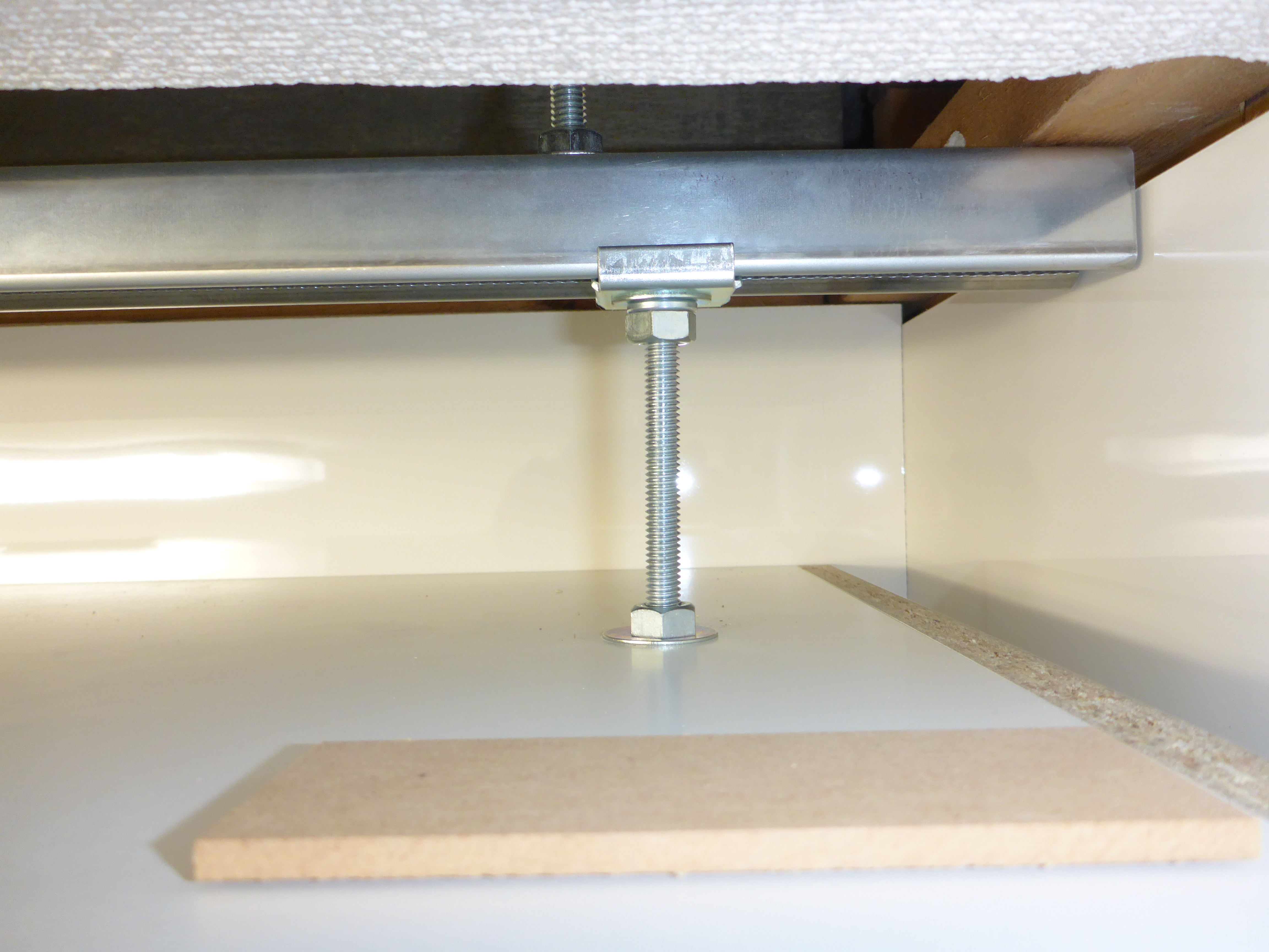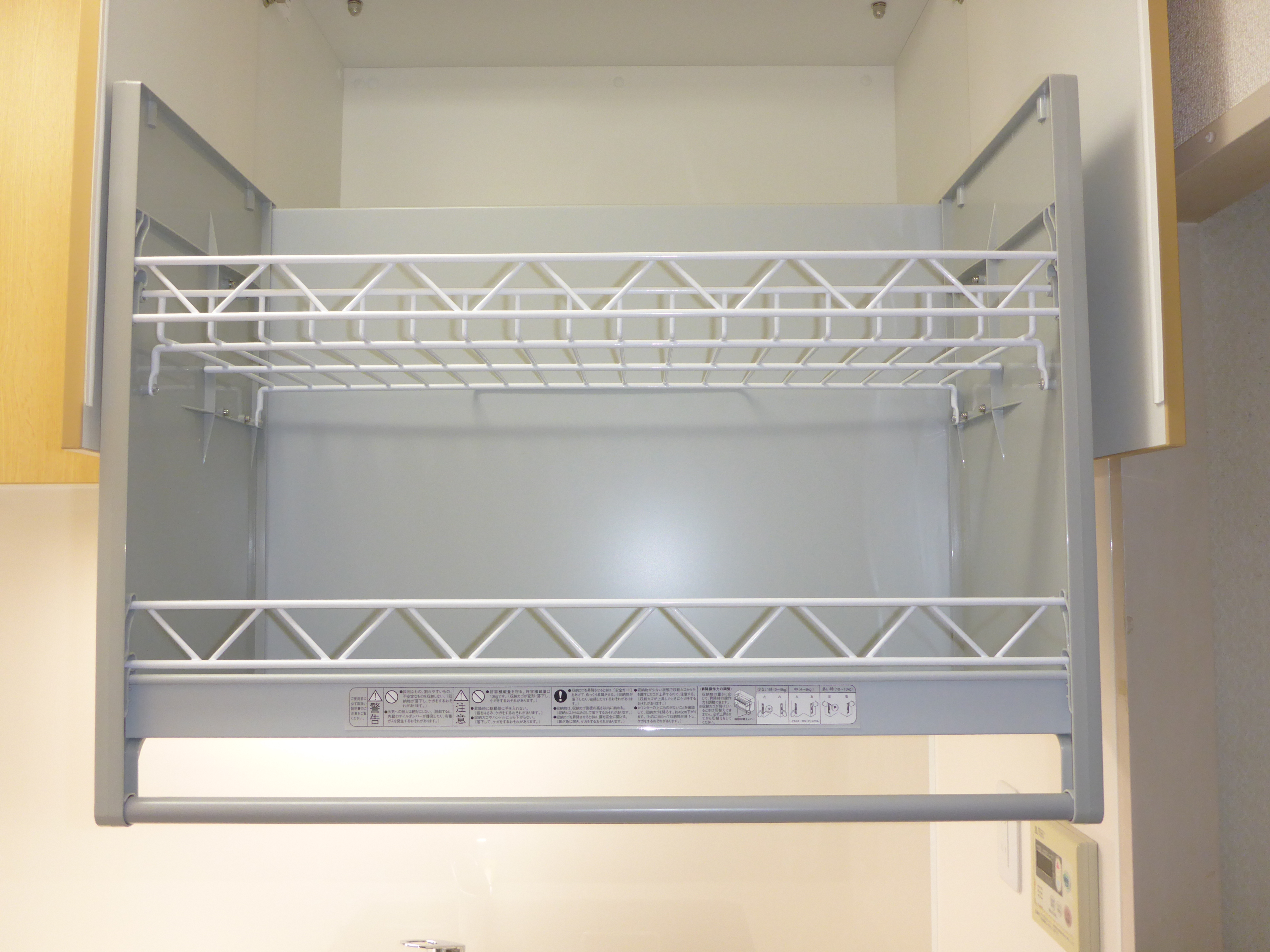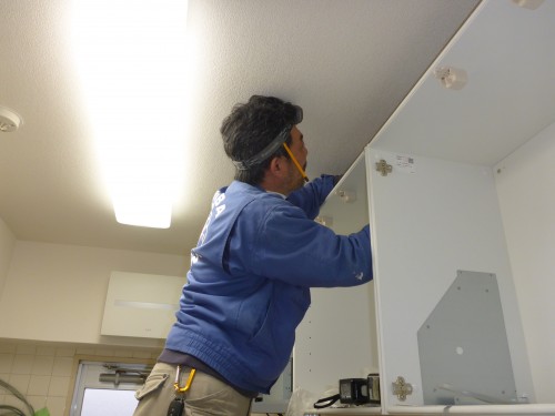 正面の吊り戸棚には、Tご主人が奥様に愛を込めて 昇降式ミドルウォールを