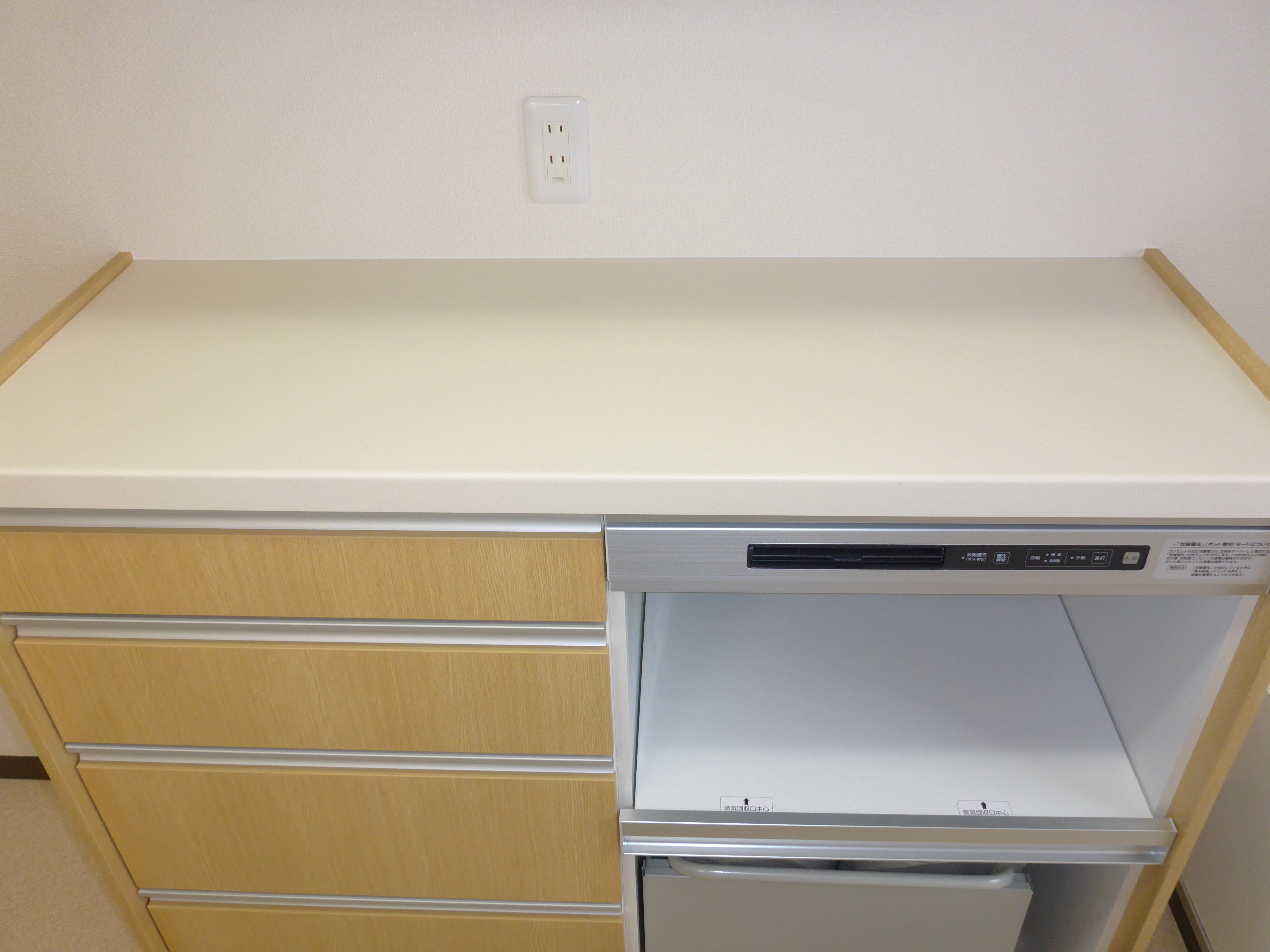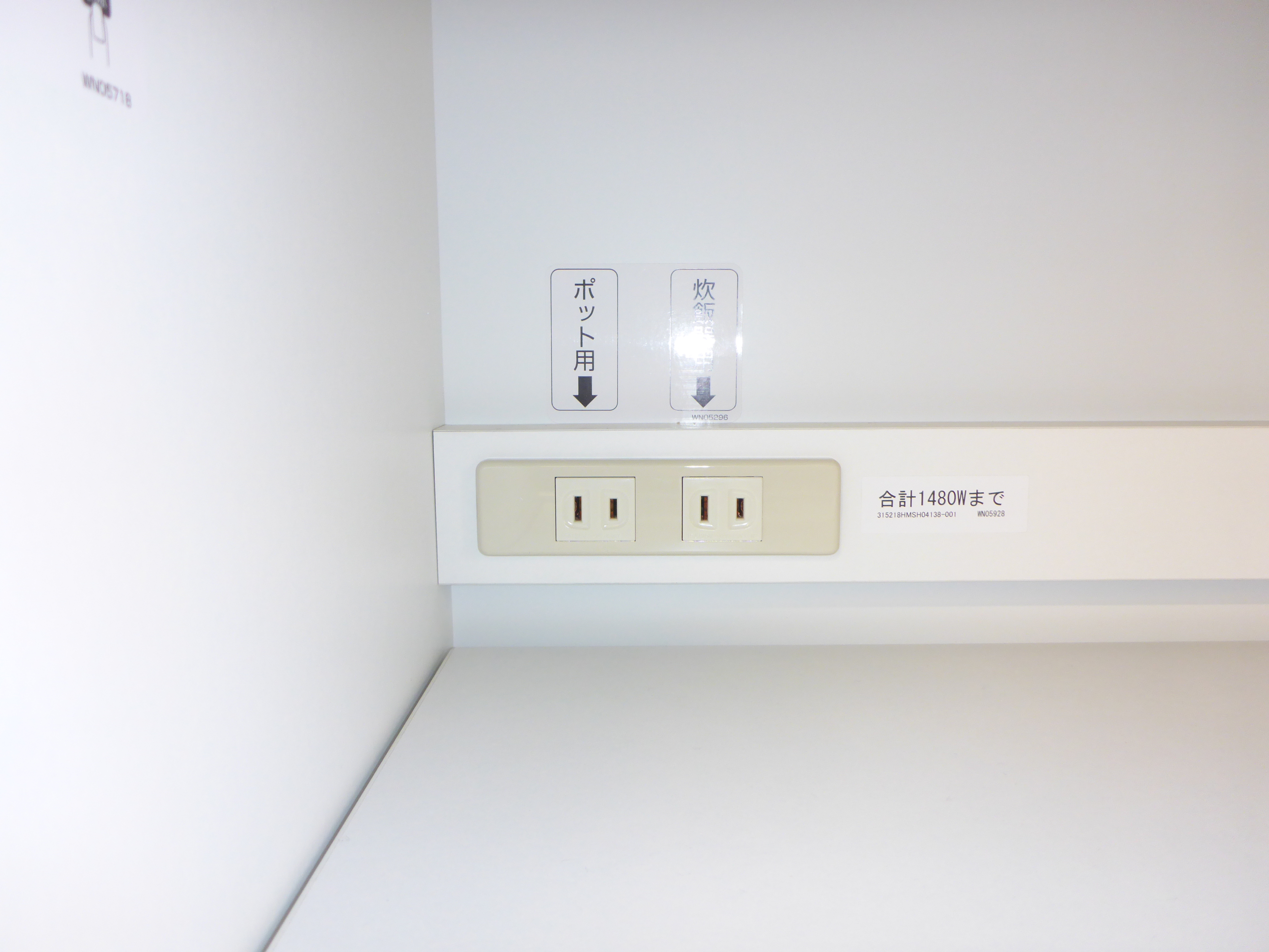 カップボードの中に、ポットと炊飯器専用のコンセントも有り大変便利です。