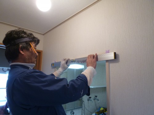 先ずは、センサーを使用して壁裏の「横貫」の位置を探ります