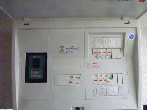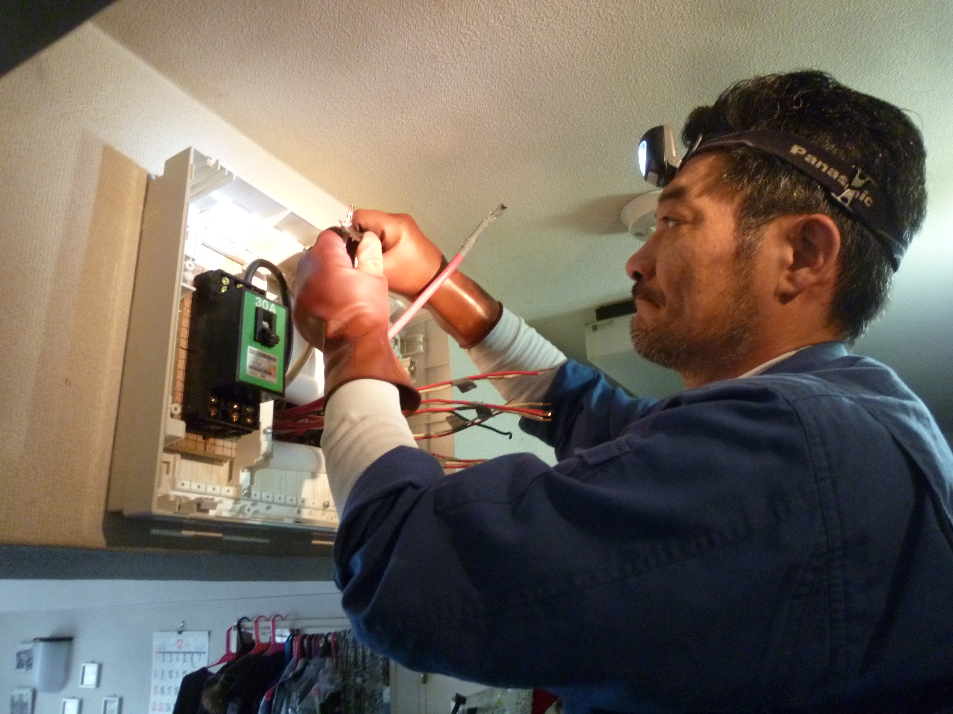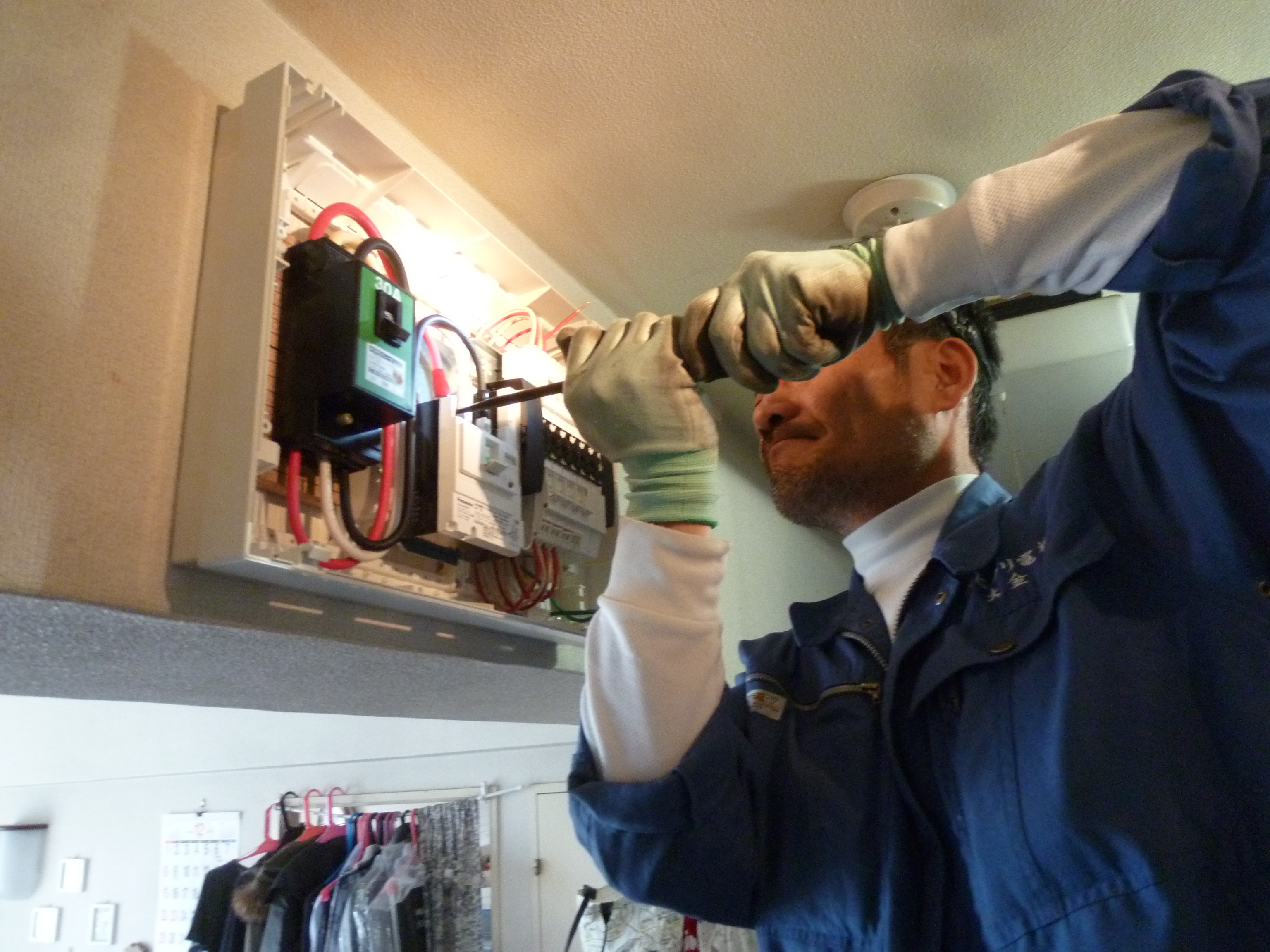 漏電遮断機付の新型分電盤をおすすめいたしております。