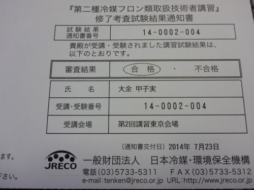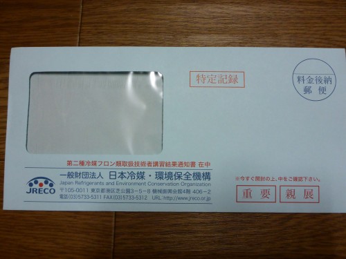 JRECOの第二種冷媒フロン類取扱技術者講習です。
