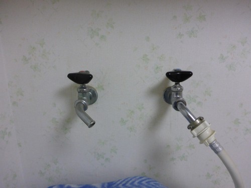 めでたく、洗濯機用湯水混合栓と新洗濯機&新乾燥機の壁掛け設置の完成です