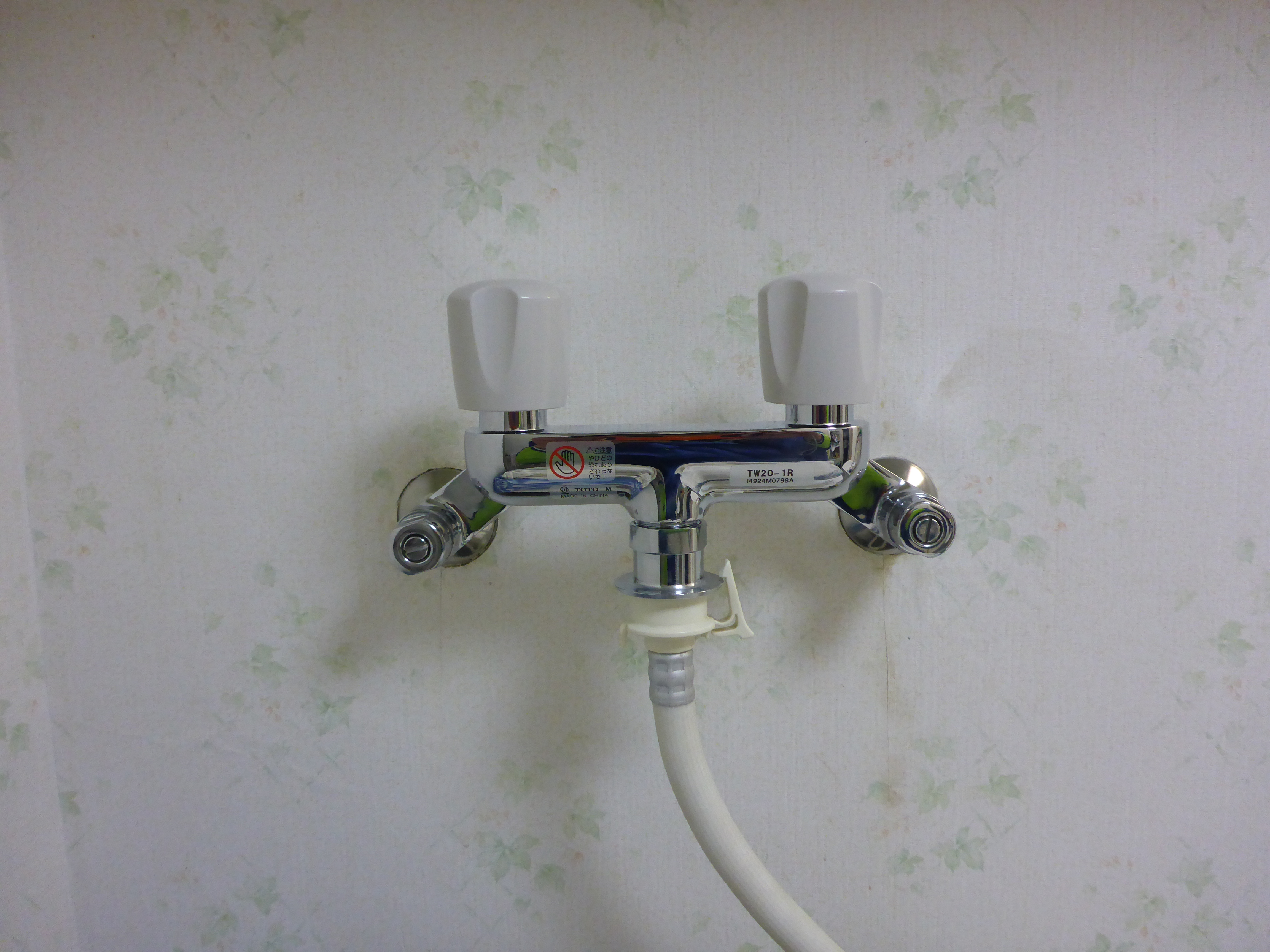 洗濯機用湯水混合栓の取替え工事と、衣類乾燥機の壁掛け施工をさせていただきました。