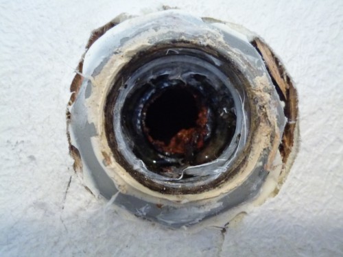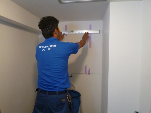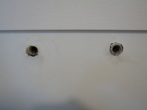 トイレ内は柱を避ける為に、二ケ所穴あけを致しまして。