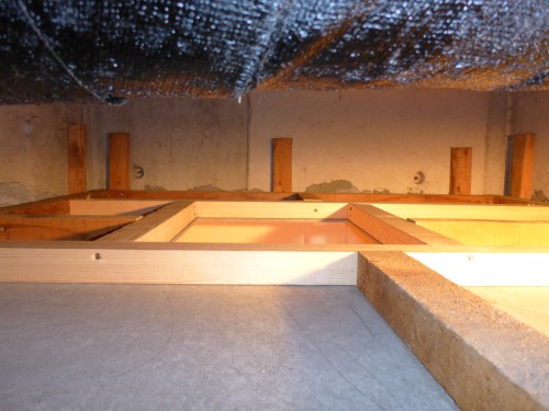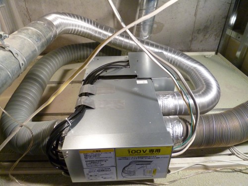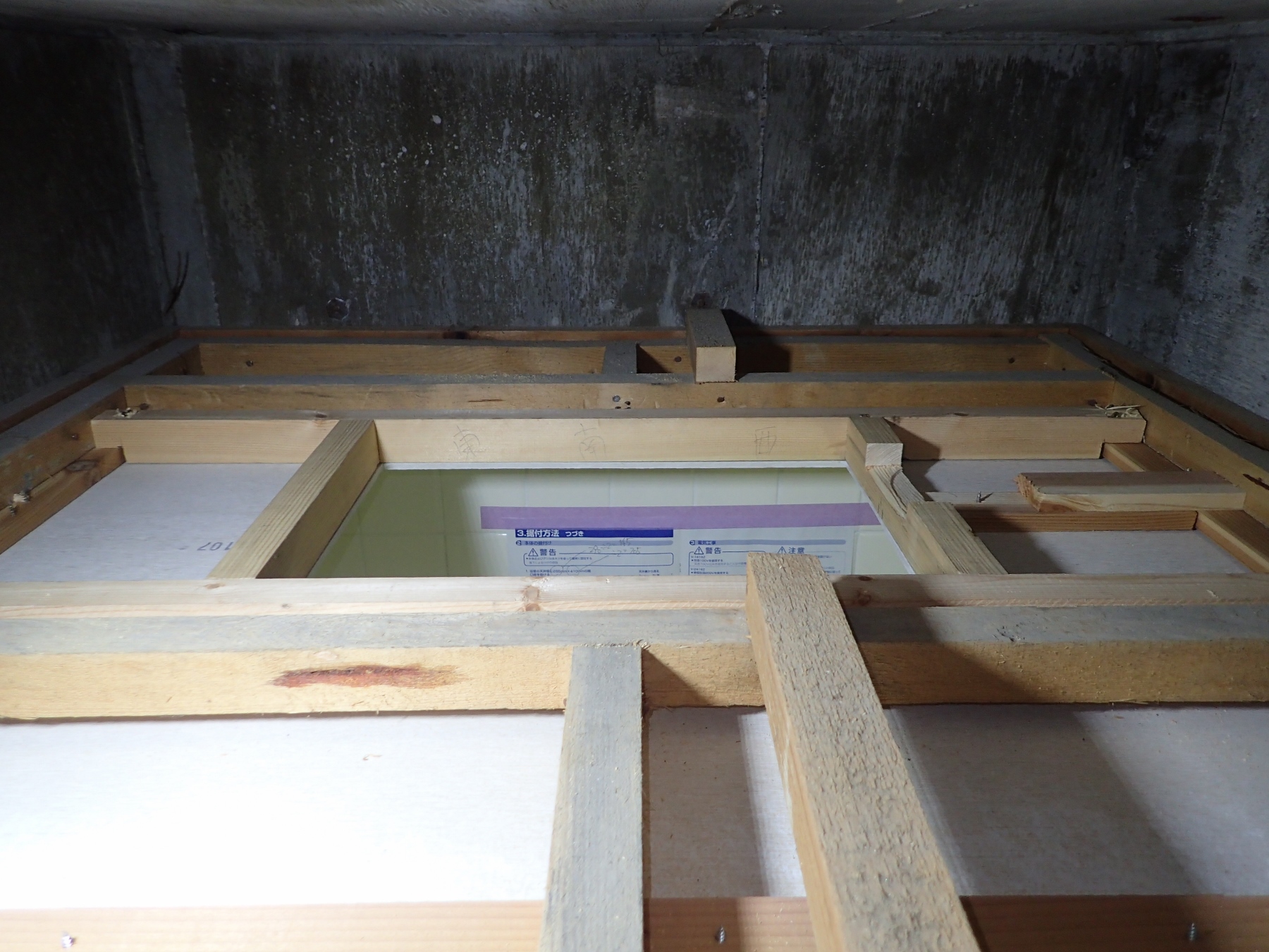 浴室乾燥暖房機を支える木枠も良い感じに出来ました。