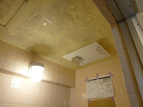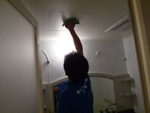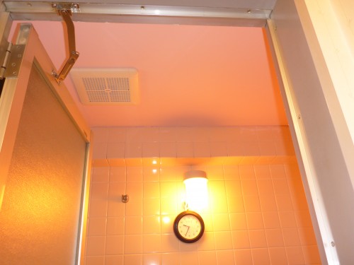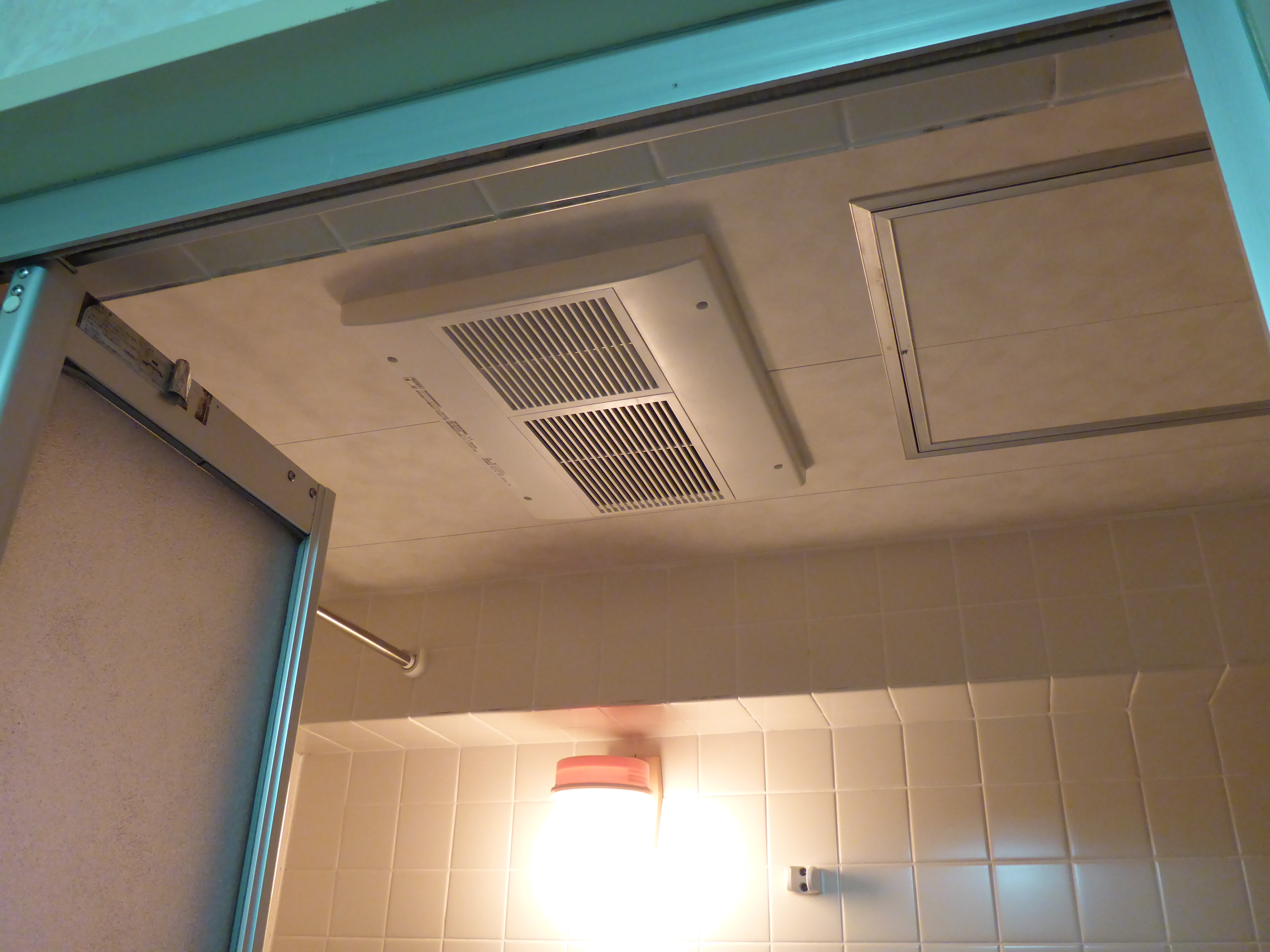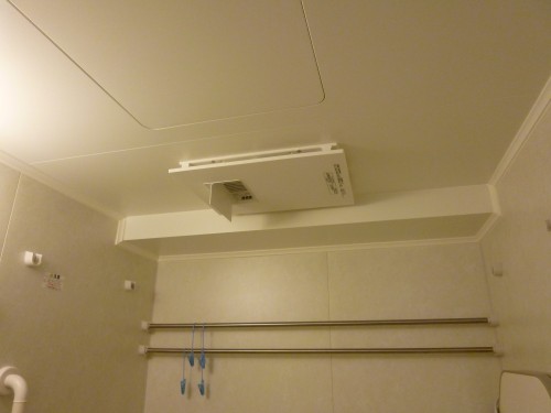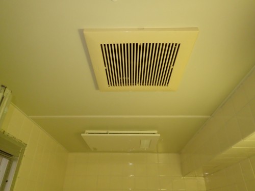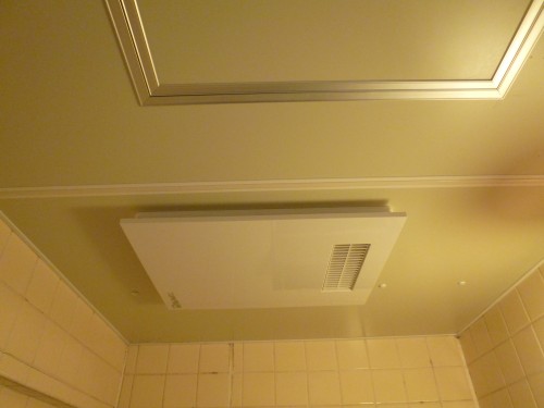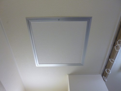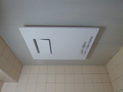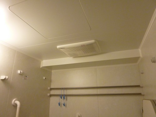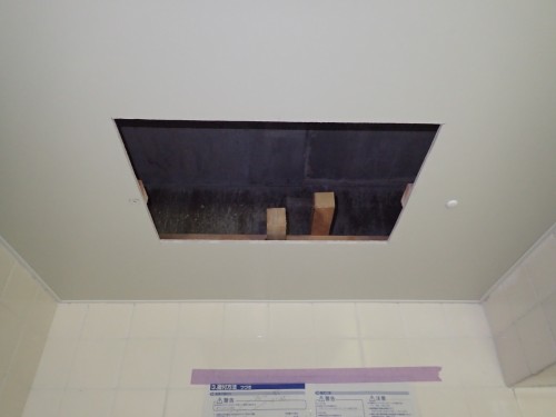 こちらの浴室に浴室乾燥暖房機と天井点検口を付けさせていただきます。