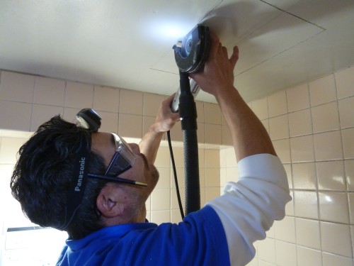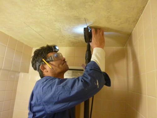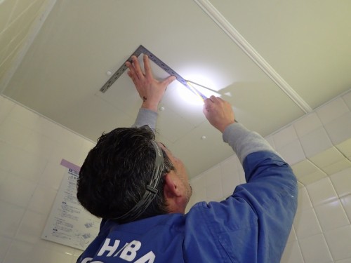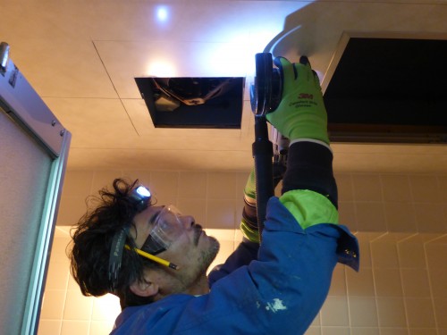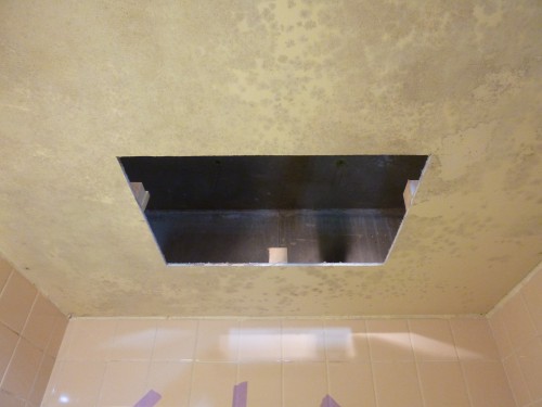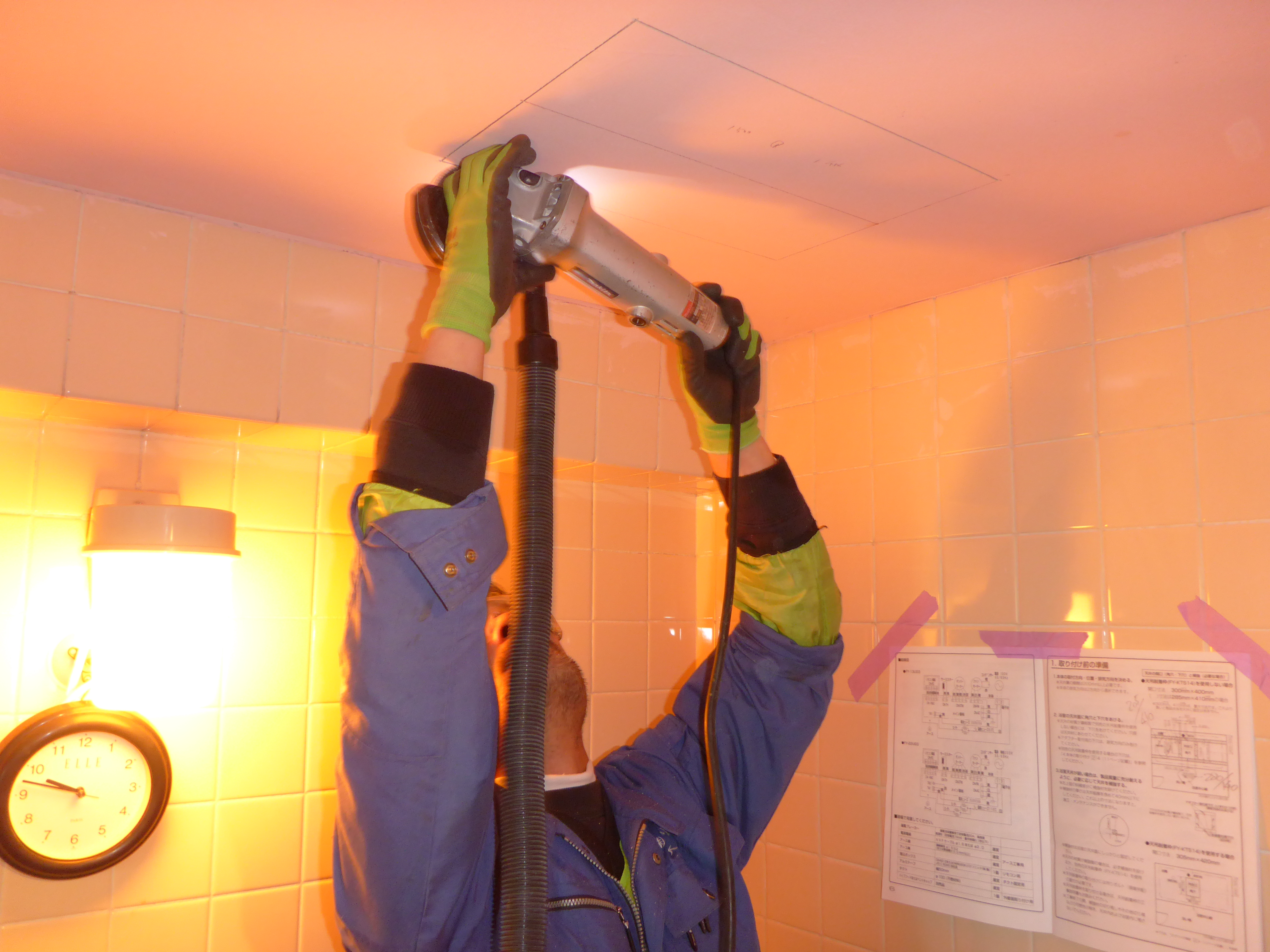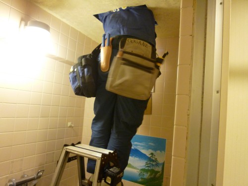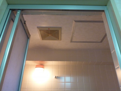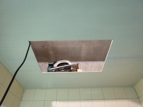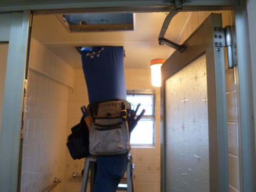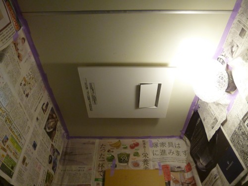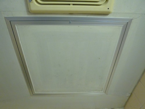 こちらの浴室に浴室乾燥暖房機と天井点検口を付けさせていただきます。