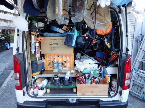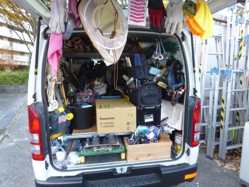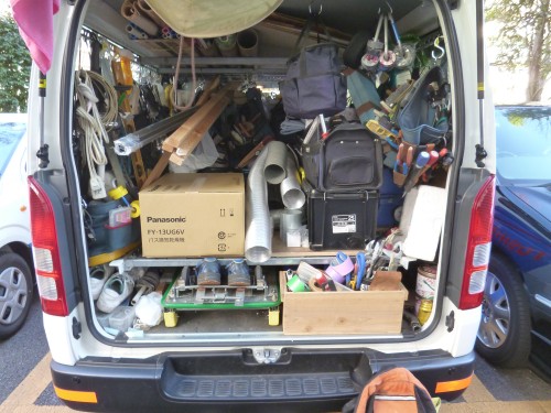 三菱君のV-241BZともろもろ工事部材を積んで出発です。