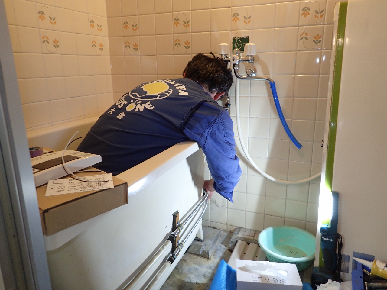 給湯器取替工事の最終は、湯船にお湯はりをして