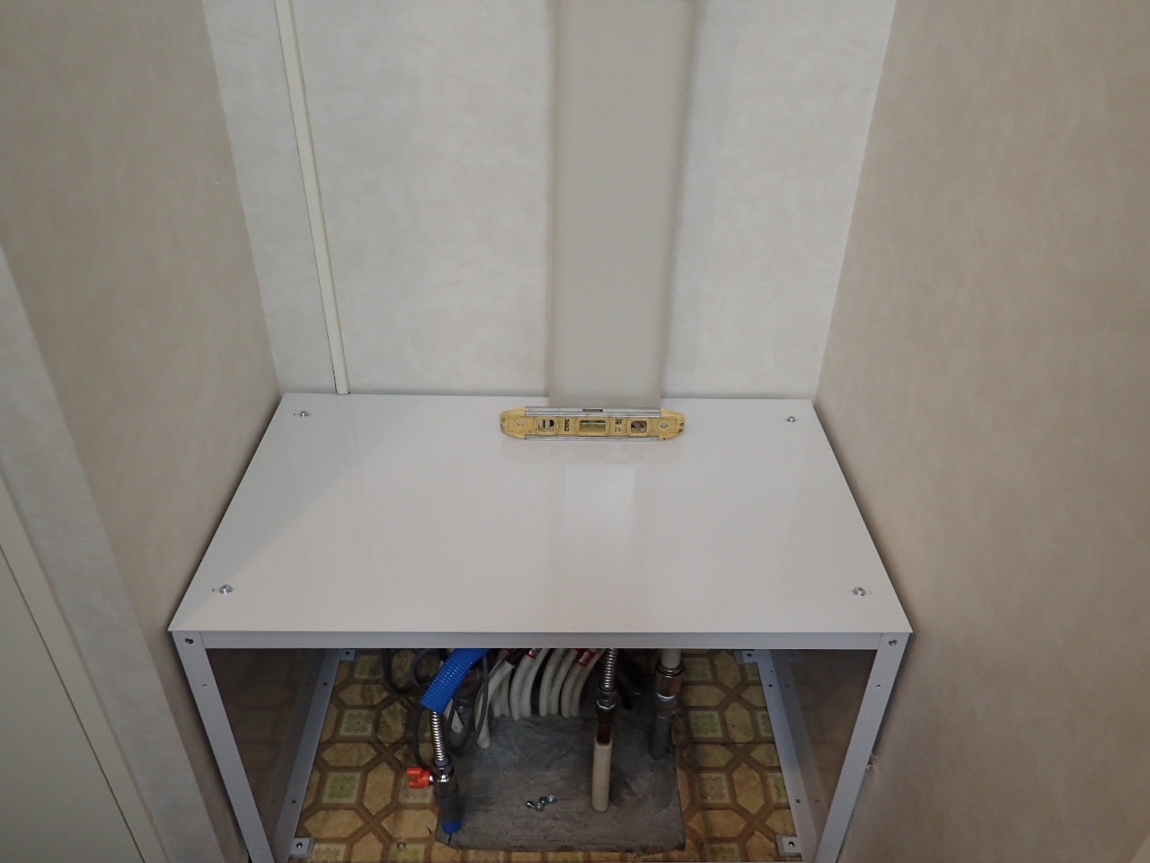 水平器を見ながら、水平、垂直バッチシにさせていただきました。